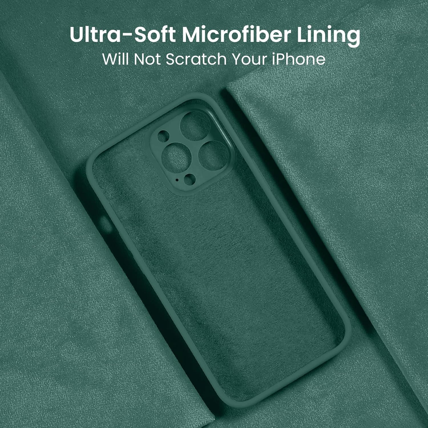 FireNova for iPhone 14 Pro Case, Silicone Upgraded [Camera Protection] Phone Case with [2 Screen Protectors], Soft Anti-Scratch Microfiber Lining Inside, 6.1 inch, Midnight Green