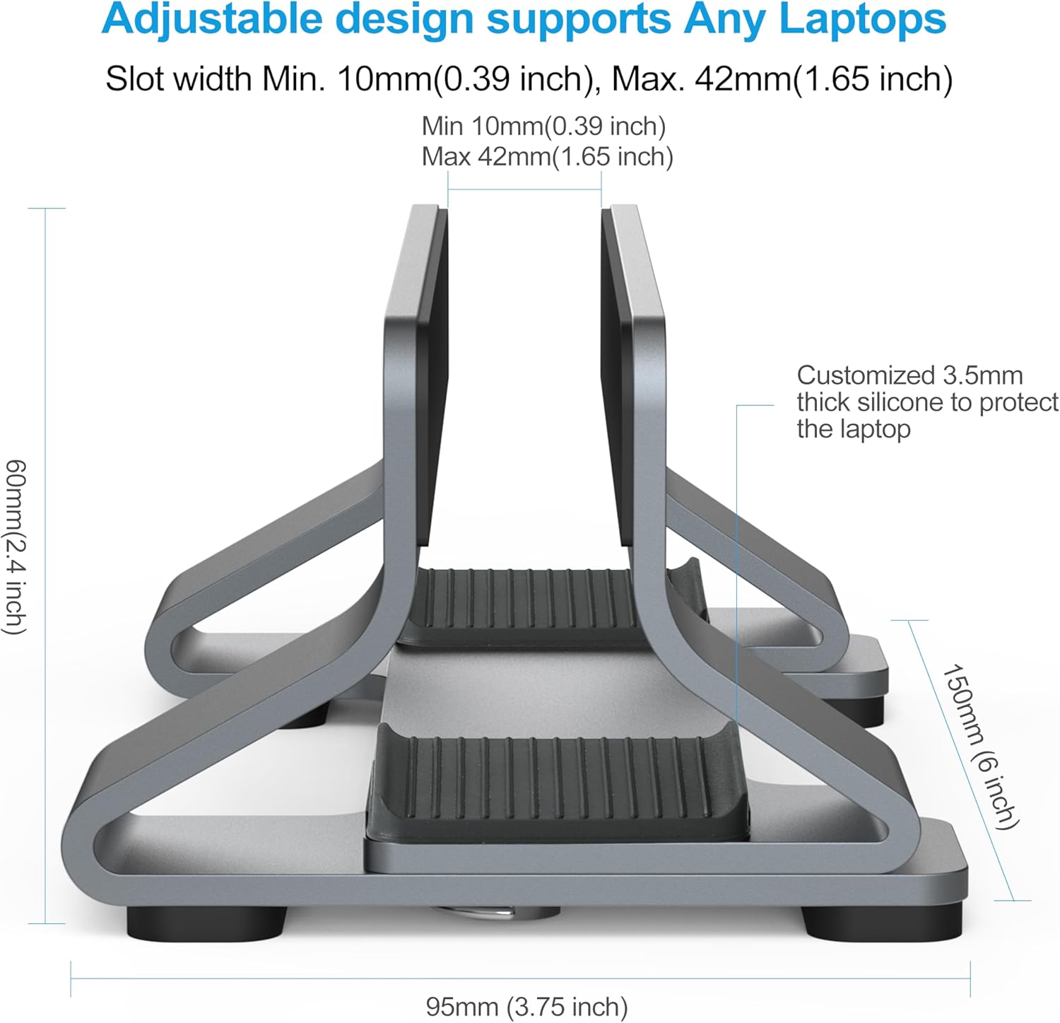 Aluminum Vertical Laptop Stand Dock Holder, Adjustable Slot Width 12-42mm, Space-Saving Upright Storage for MacBook and Laptops