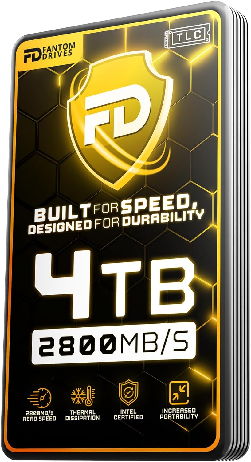 Fantom Drives - 4TB External 3D NAND TLC Portable Solid State Drive - Thunderbolt 3 & 4 USB 3.2 Type-C - 2800MB/s - Intel Certified -TB3X-2300N4TB