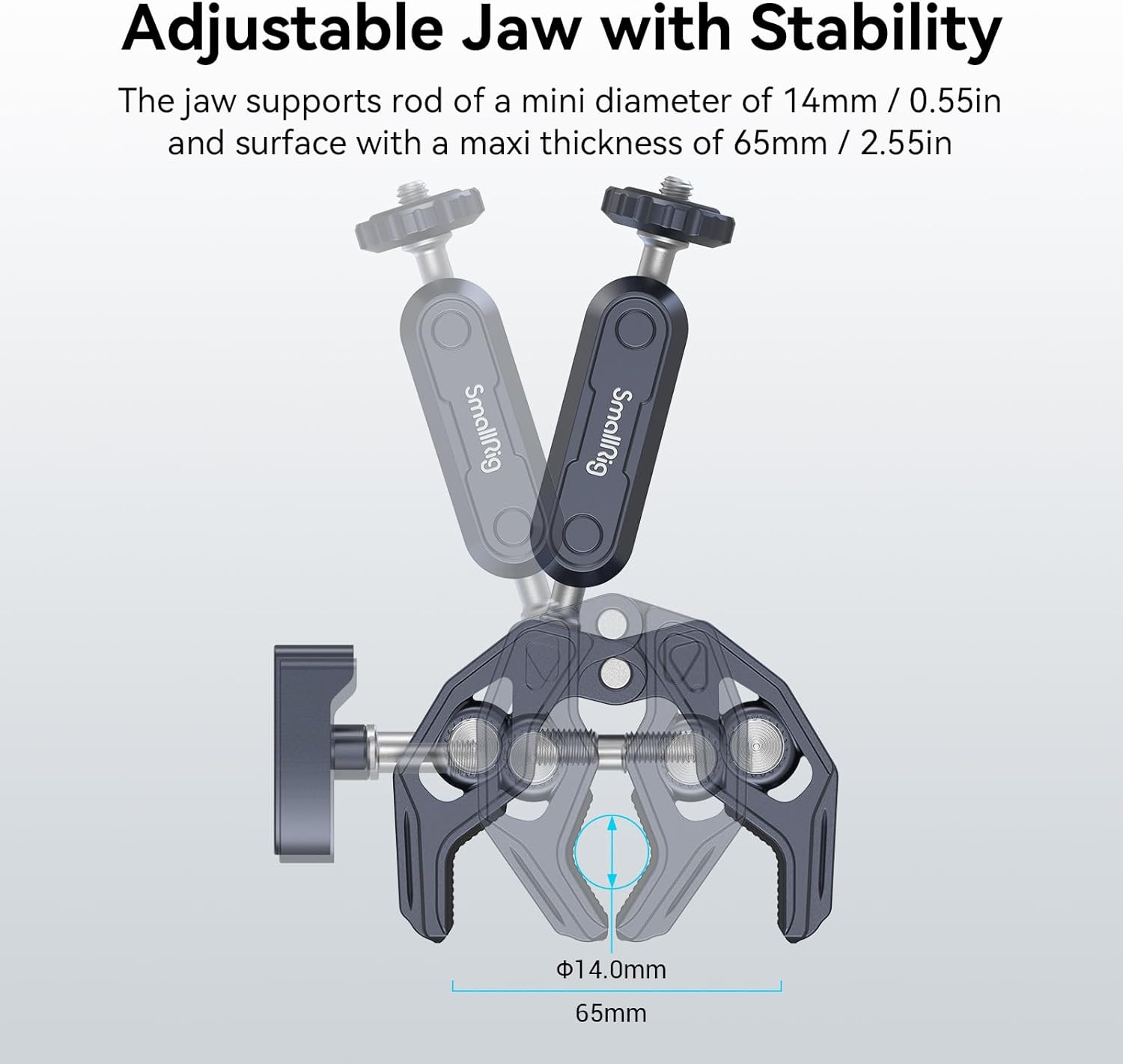 - Adapter for Gopro: The clamp includes a removable adapter for the action camera. In addition, it also fits SMALLRIG Camera Cage 3084B for GoPro Hero 11/10/9 Black and SMALLRIG Camera Cage for DJI Osmo Action 4/3 4119.