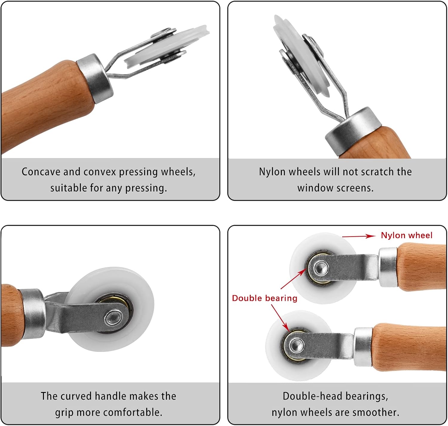 - New Combination: Well-fitted bearing wheels avoid wobble while working. The Screen Retainer Spline Removal Hook is used to remove the old Screen Retainer Spline, and the Screen Rolling is used to install the new screen mesh and Screen Rolling