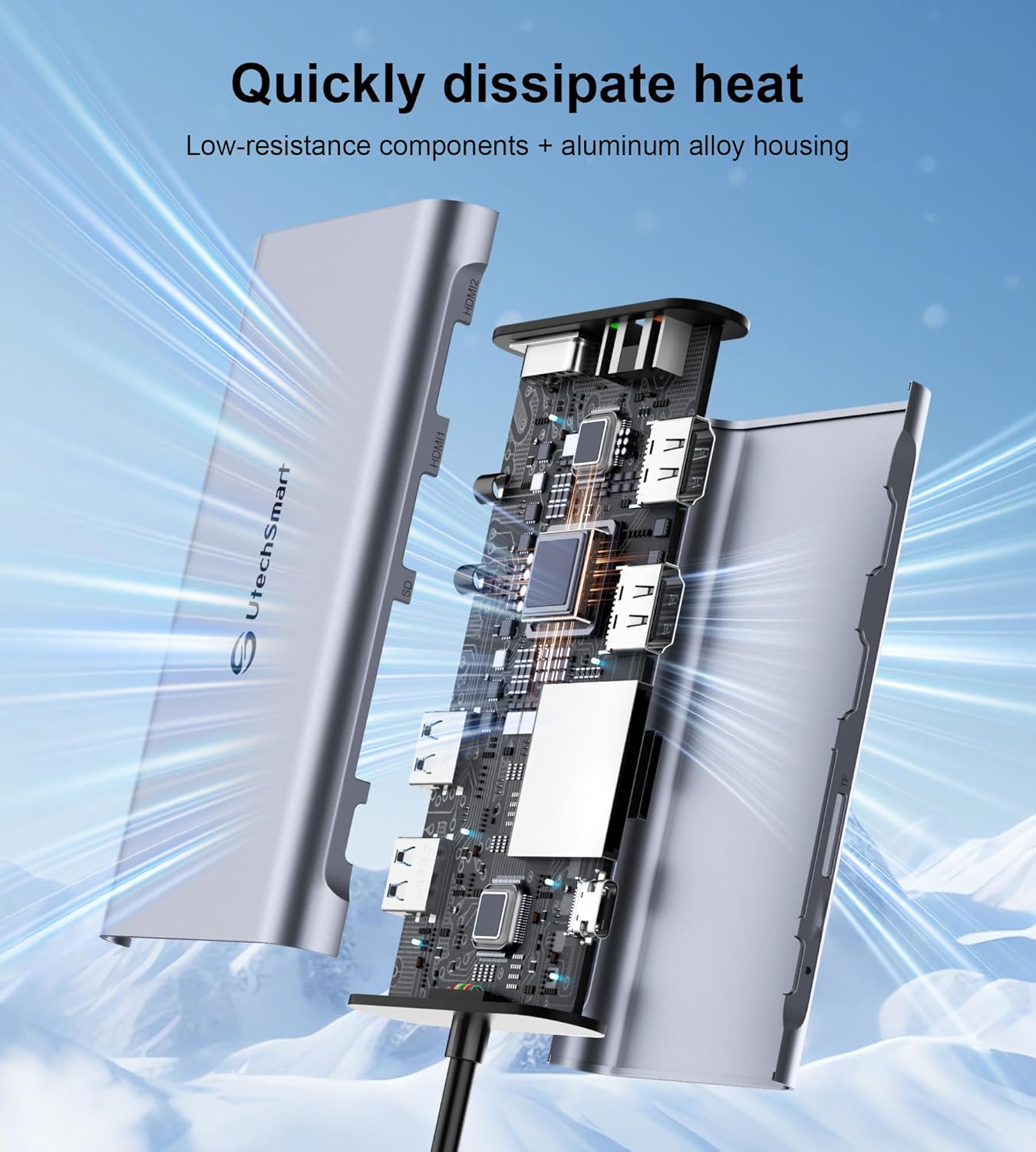 - [UtechSmart For U] - Contact us for a pleasant solution when being confused. Package include: 1x USB Docking Station, 1x little USB C male to USB female adapter, 1x User manual and get our quick response assistance process. Have any issue with the connection, please let me know and UtechSmart provides with 18-month product care and 24/7 customer support!