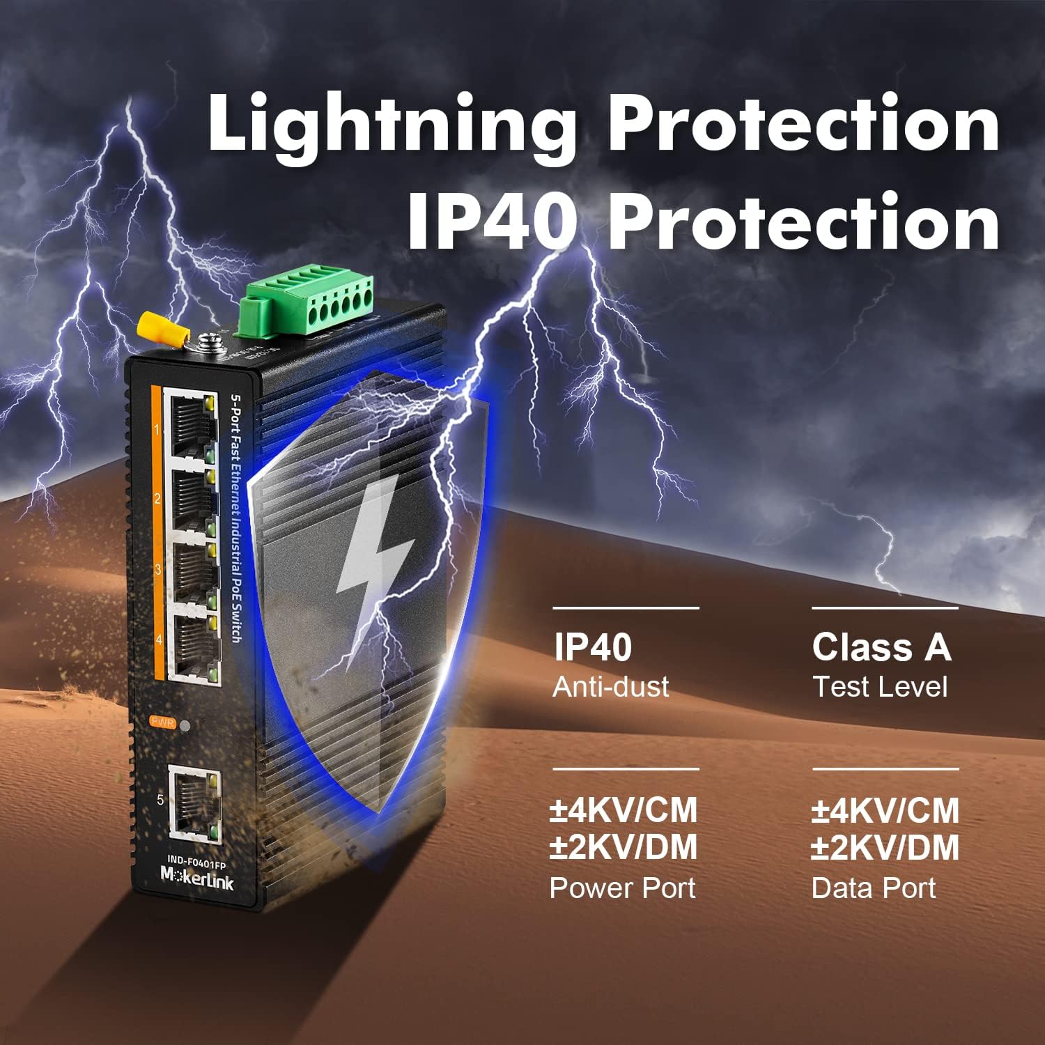 MokerLink 5 Port PoE Industrial DIN-Rail Network Switch, 60W IEEE802.3af/at PoE Power, 10/100Mbps Fast Ethernet, IP40 Rated Network Switch (-40 to 185°F), with UL Power Supply