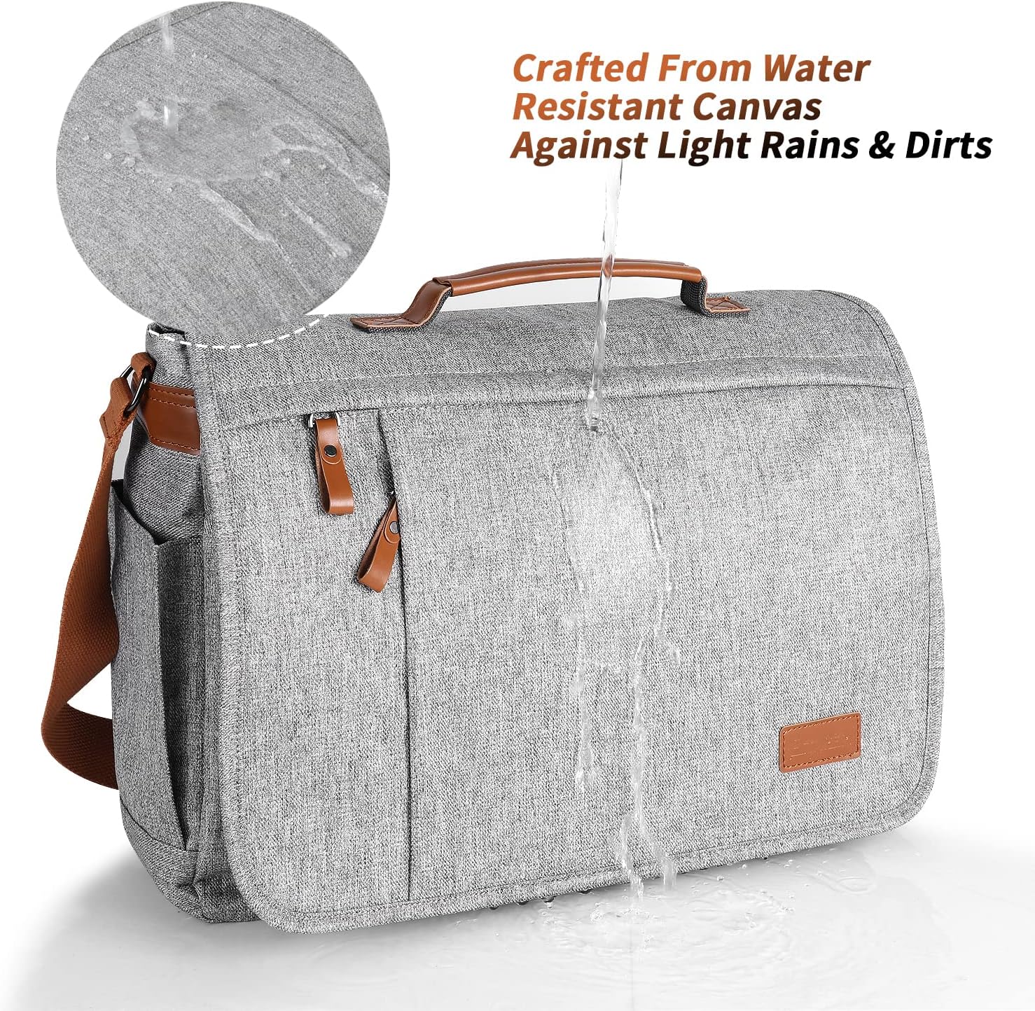 - HIGH QUALITY MATERIAL: Messenger bag made of water-resistant canvas, keeps your laptop and other stuffs from rain & snow. All zippers are more durable and smooth, not stuck in the fabric.The front flap is equipped with upgraded buckles ensure the bag's safety; Reinforced stitching seams can be used for a longer time, not easy crack.