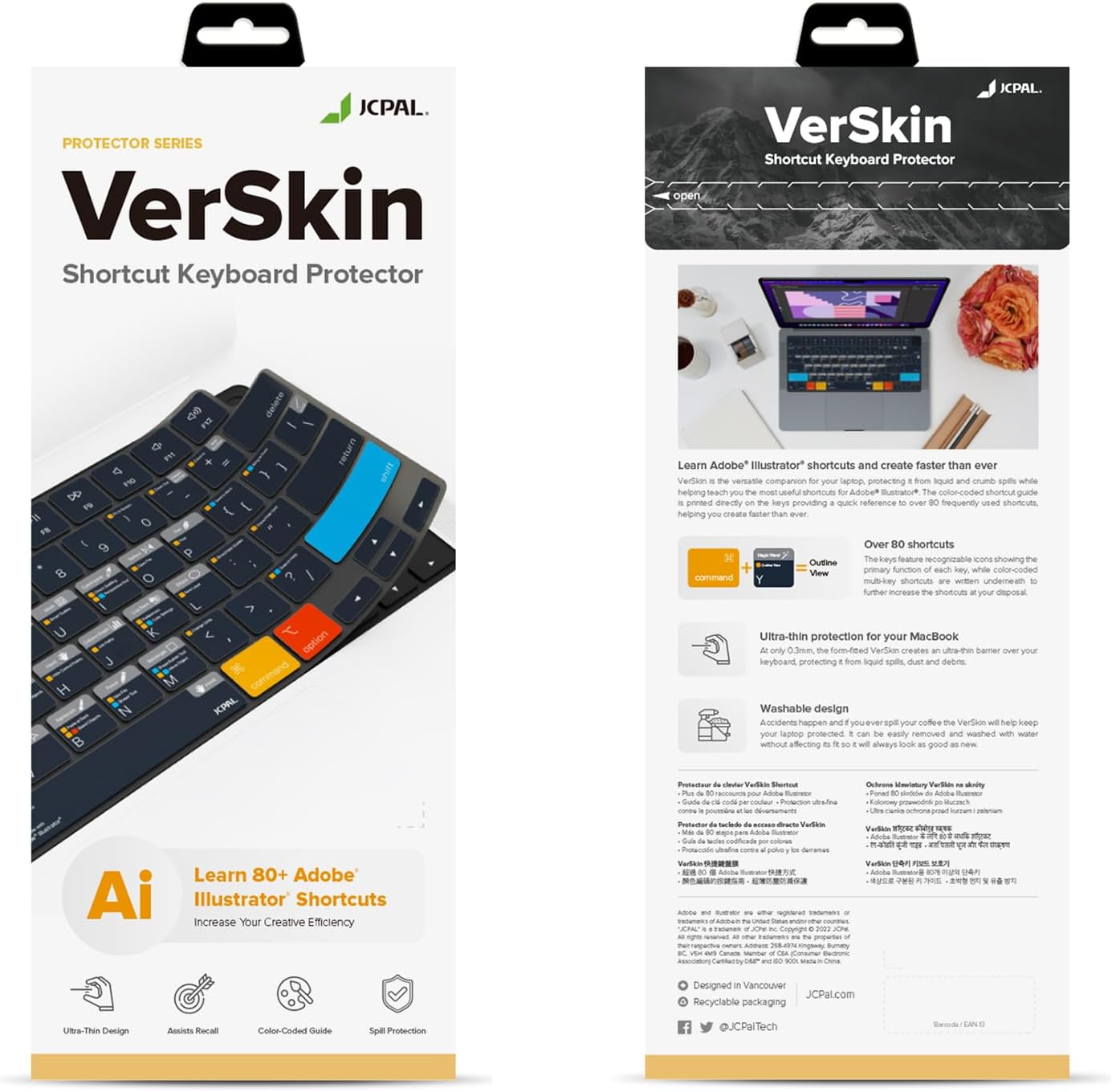 - Designed by JCPal in Vancouver, Canada for the latest version of Adobe Illustrator CC. Protects your Apple Laptop from dust and liquid spills and can be washed without affecting the fit.