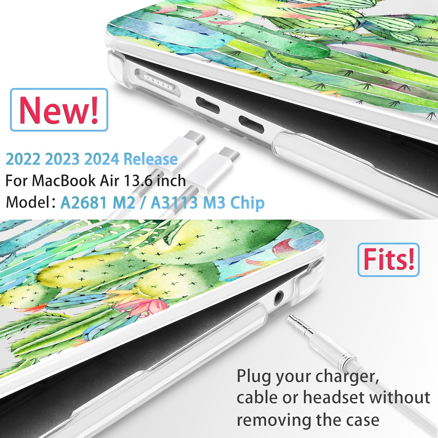 Mektron for 2025 M4 MacBook Air 13.6 Inch A3240 Case Fits 2023 A2681 M2 2024 A3113 M3 Chip with Liquid Retina Display, Printed Plastic Hard Shell Cover for MacBook Air 13.6", Watercolor Cactus