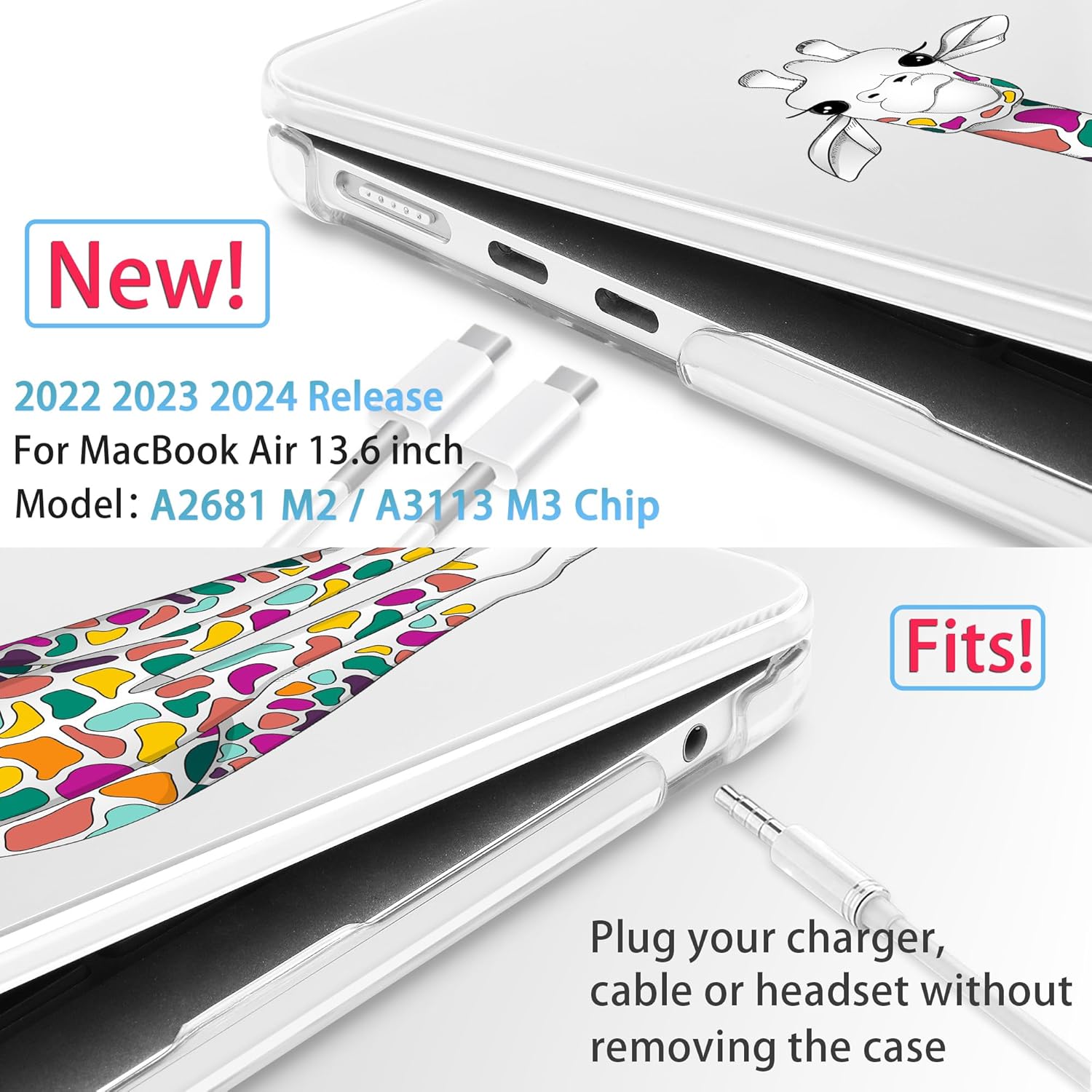 Mektron for 2025 M4 MacBook Air 13.6 Inch A3240 Case Fits 2023 A2681 M2 2024 A3113 M3 Chip with Liquid Retina Display Touch ID, Printed Plastic Hard Shell Cover for MacBook Air 13.6", Giraffe