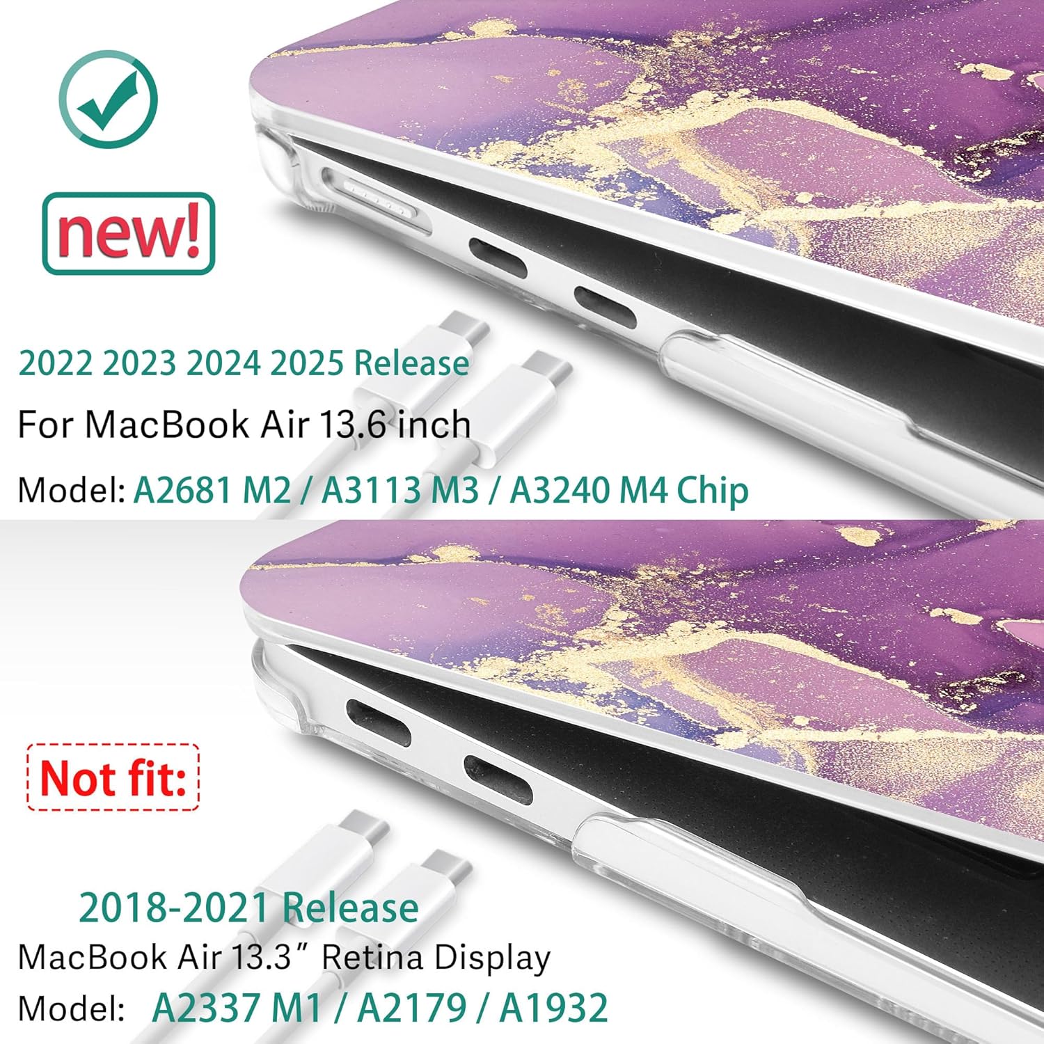 - Designed ONLY to be compatible with MacBook Air 13.6 inch 2025 2024 2023 2022 Newest Release Model: A3240 M4 A3113 M3 A2681 M2 Chip with Liquid Retina display Fits Touch ID. Pls verify Model No. the underside of laptop before buying.