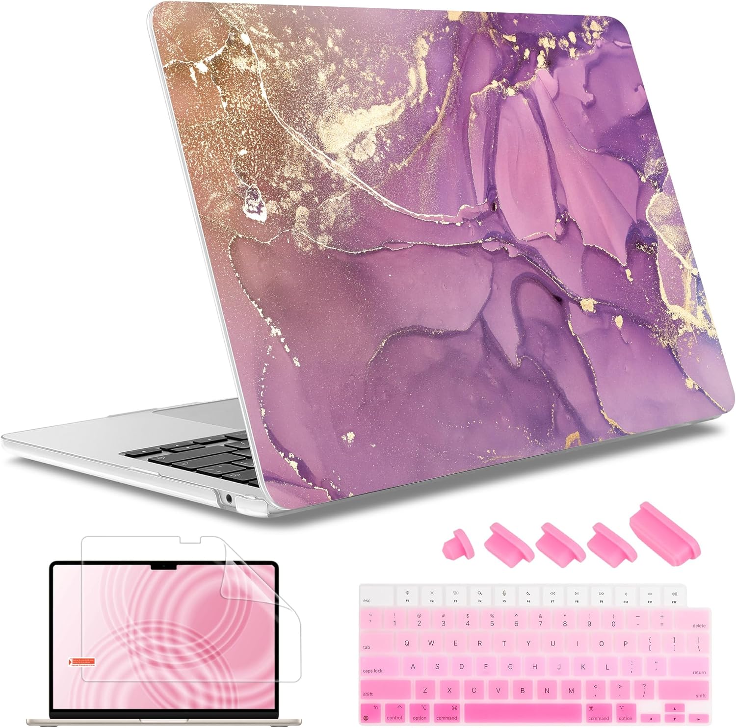May Chen for MacBook Air 13.6 inch Case A3240 M4 A3113 M3 A2681 M2 with Retina Dispaly, 2025 2024 2023 2022 Release, Plastic Hard Shell Case with Screen Protector & Keyboard Cover, Purple Marble
