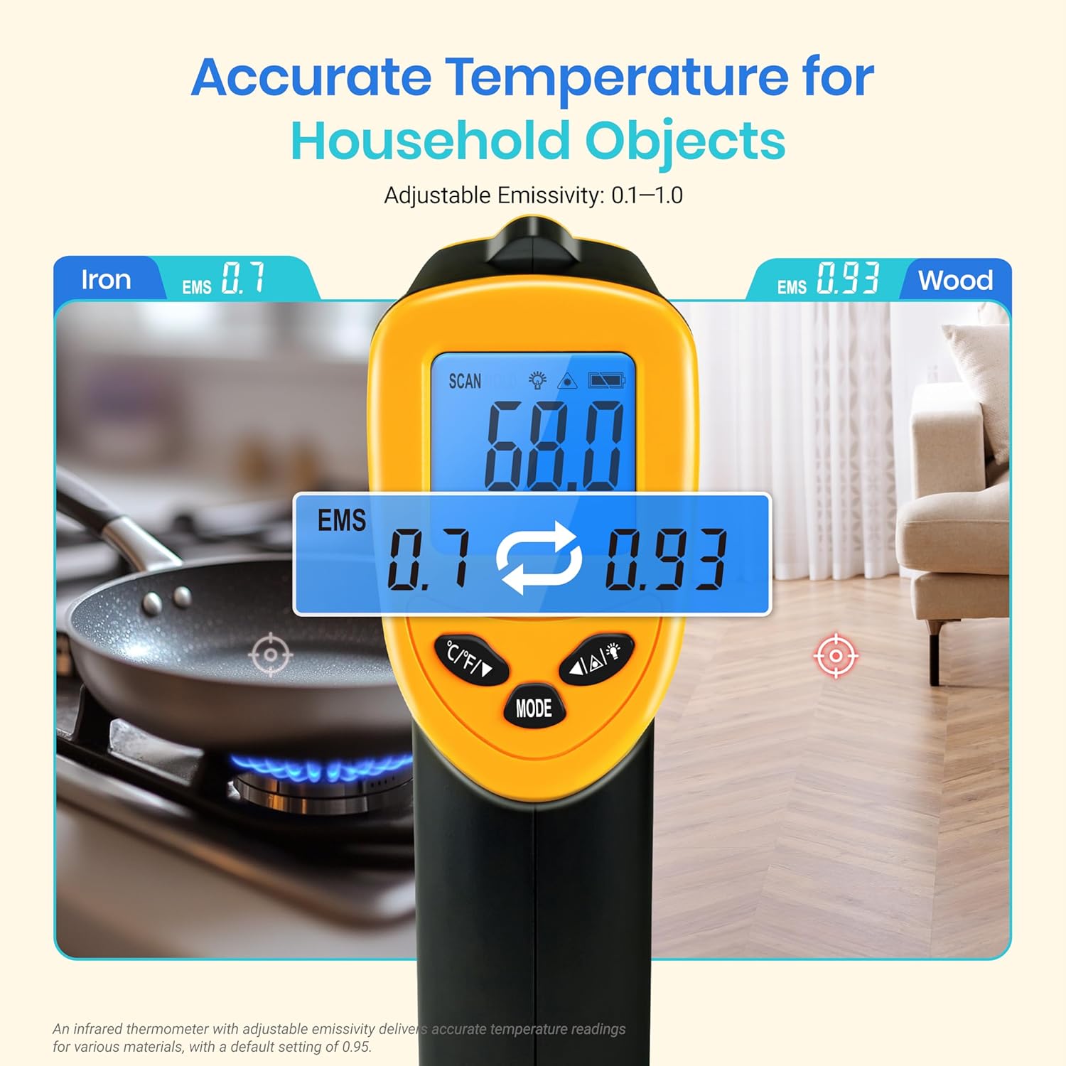 - 𝐕𝐞𝐫𝐬𝐚𝐭𝐢𝐥𝐞 𝐓𝐨𝐨𝐥𝐬: Infrared technology allows you to measure various objects at home and outdoors; Use it for 𝒎𝒆𝒂𝒕, 𝑫𝑰𝒀 𝒄𝒂𝒏𝒅𝒚, 𝒐𝒗𝒆𝒏𝒔, 𝒈𝒓𝒊𝒍𝒍𝒊𝒏𝒈, 𝒇𝒐𝒐𝒅, 𝒄𝒐𝒐𝒌𝒊𝒏𝒈, 𝒂𝒖𝒕𝒐𝒎𝒐𝒕𝒊𝒗𝒆 𝒖𝒔𝒆, 𝑨/𝑪, 𝒓𝒆𝒇𝒓𝒊𝒈𝒆𝒓𝒂𝒕𝒐𝒓𝒔, etc.