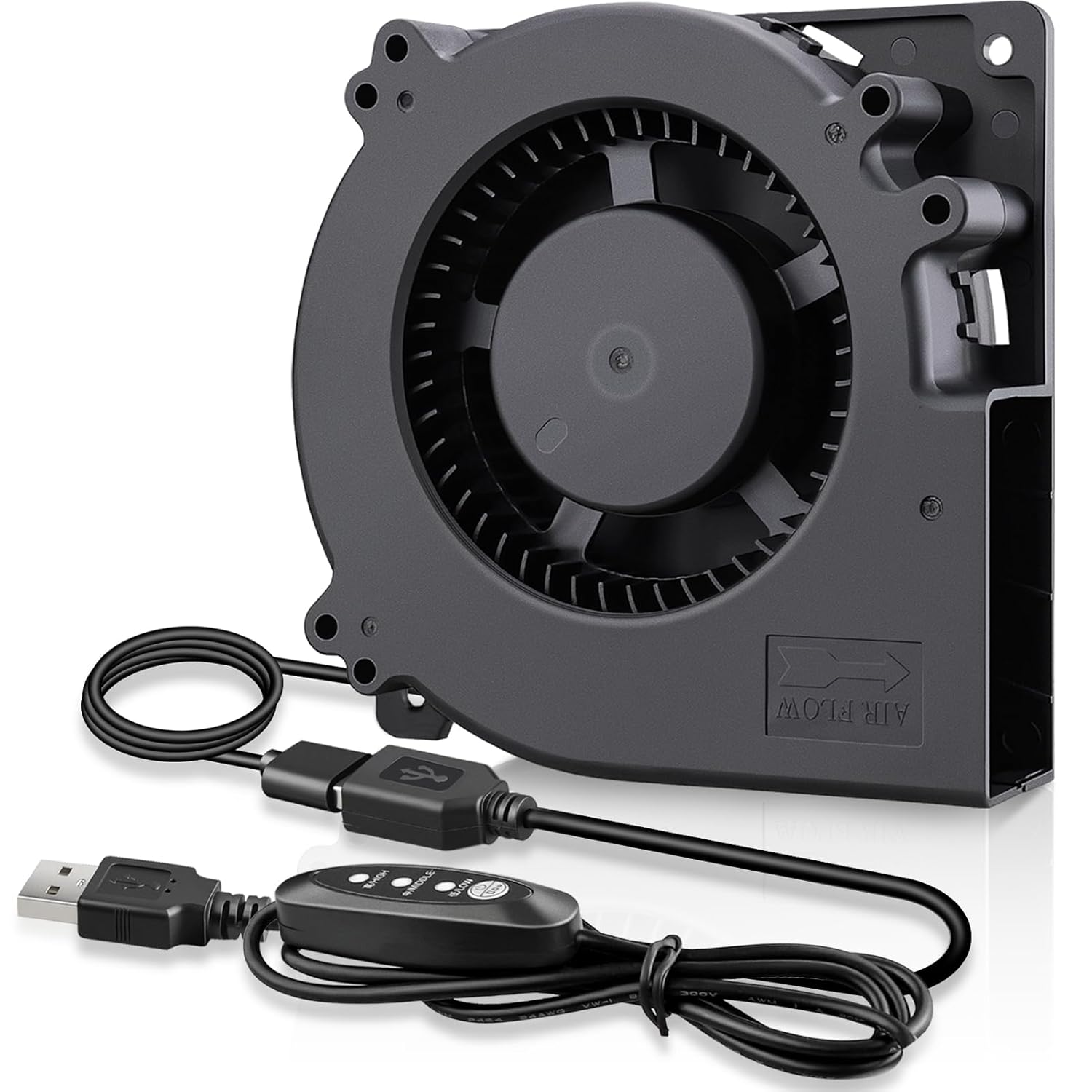 - 1.8ft USB Power Plug: 5v dc usb plug can power the blower through USB ports found behind popular AV electronics and game consoles; Compatible with wall adapter, car charger, power bank and all standard USB type-A ports