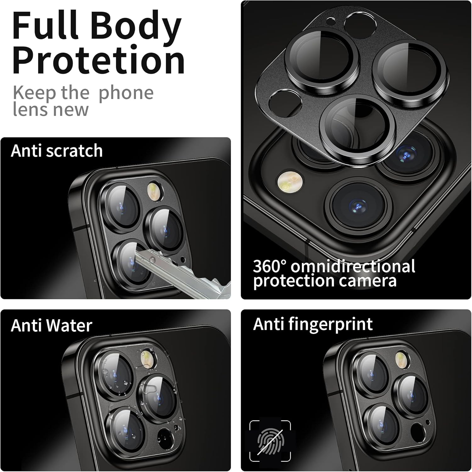 - [Full Protection] Full coverage drops protection anti-scratch, shockproof. The aviation aluminum metal ring and 9H tempered glass camera protector effectively protecting the lens,featuring maximum protection from scratches, scrapes, and bumps.