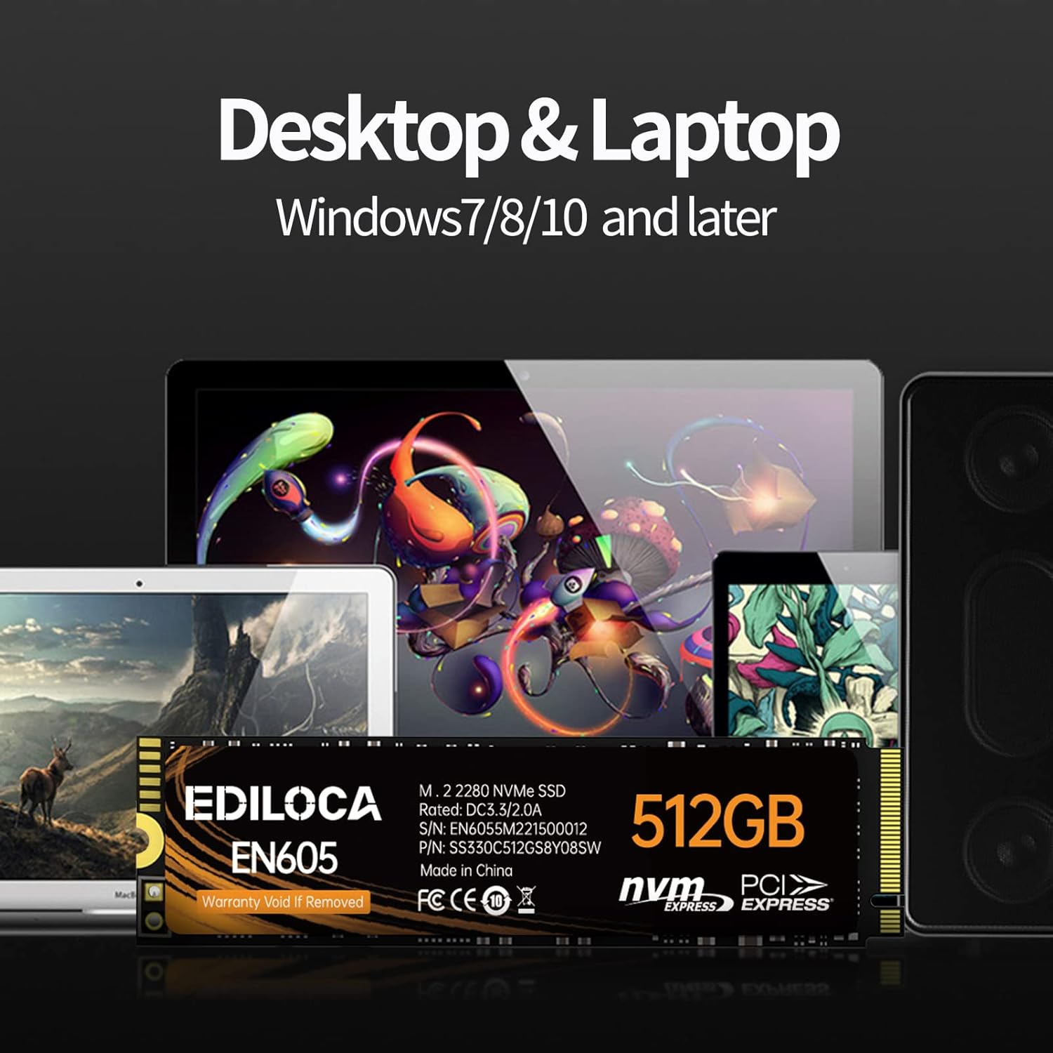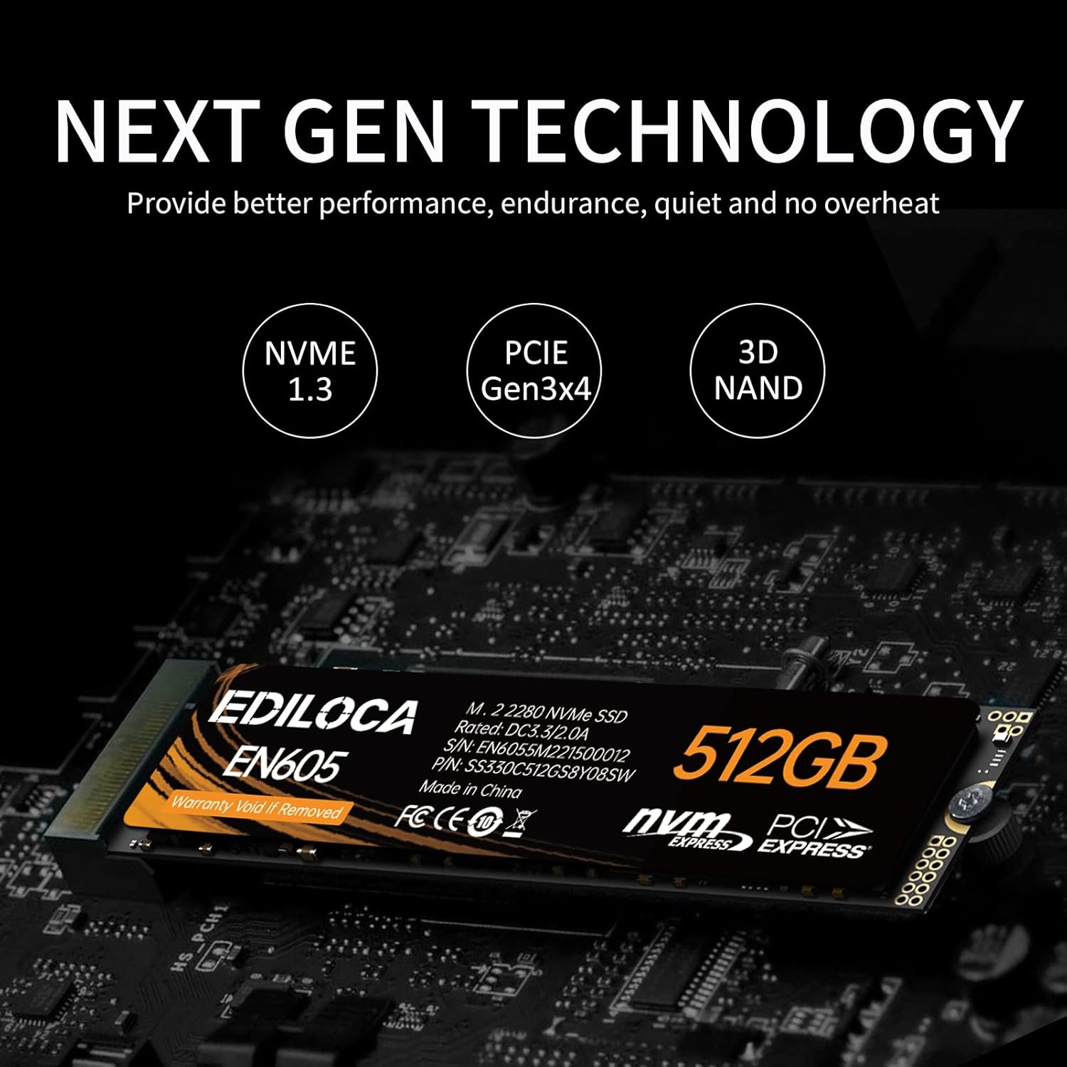 - 【Top Performance】With the accelerated performance through NVMe technology, EDILOCA EN605 M.2 SSD can provide you with shorter loading time and faster data transfer. EN605 NVMe SSD can reduce OS and game/software latency, you can get stable and smooth gaming / office experience.