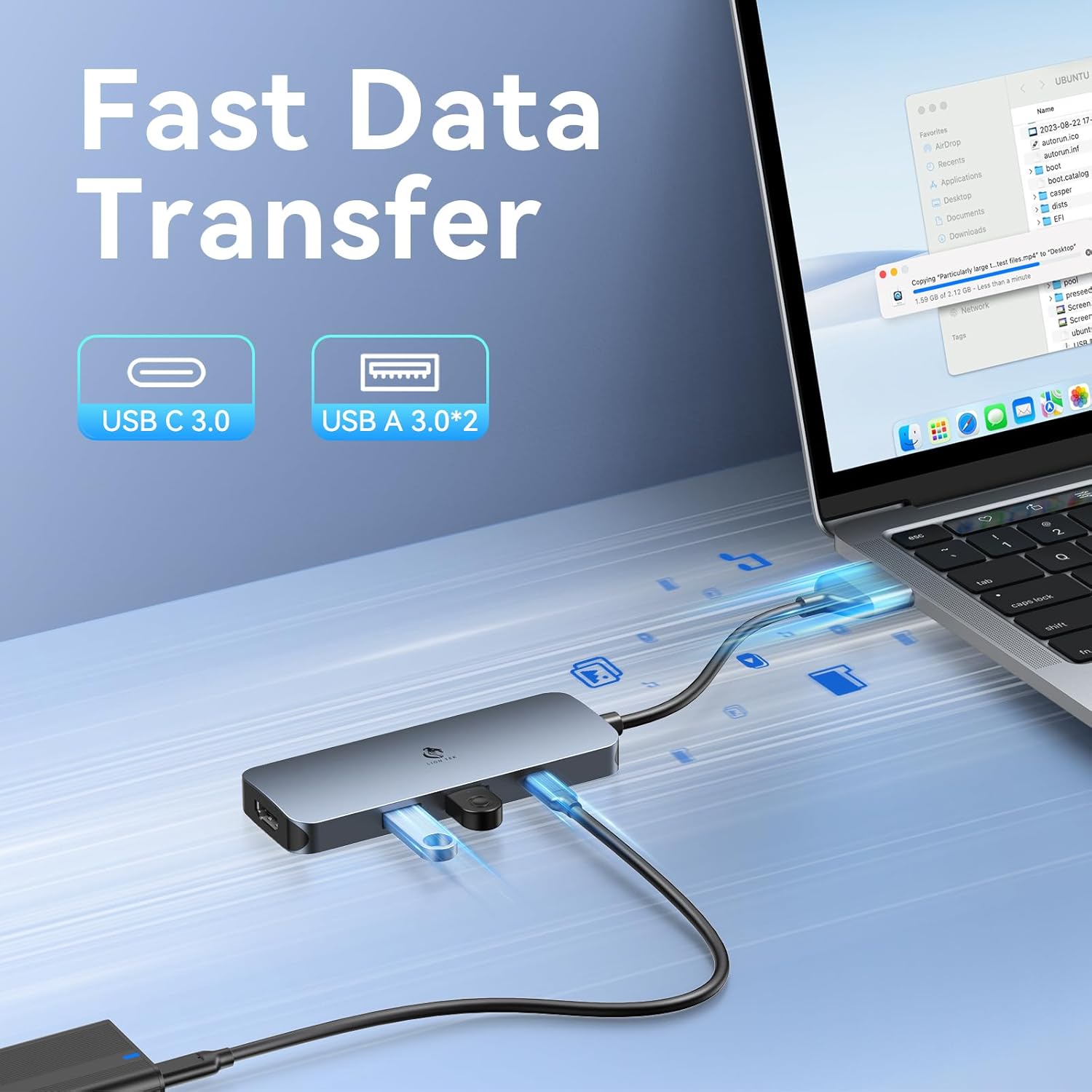- Super-fast Data Transfer with 3 USB 3.0: Connect your devices quickly and efficiently with this macbook dock 3x USB 3.0 ports, providing data transfer speeds up to 5Gbps. Easily sync smartphones, tablets, or external hard drives, while enjoying seamless data access