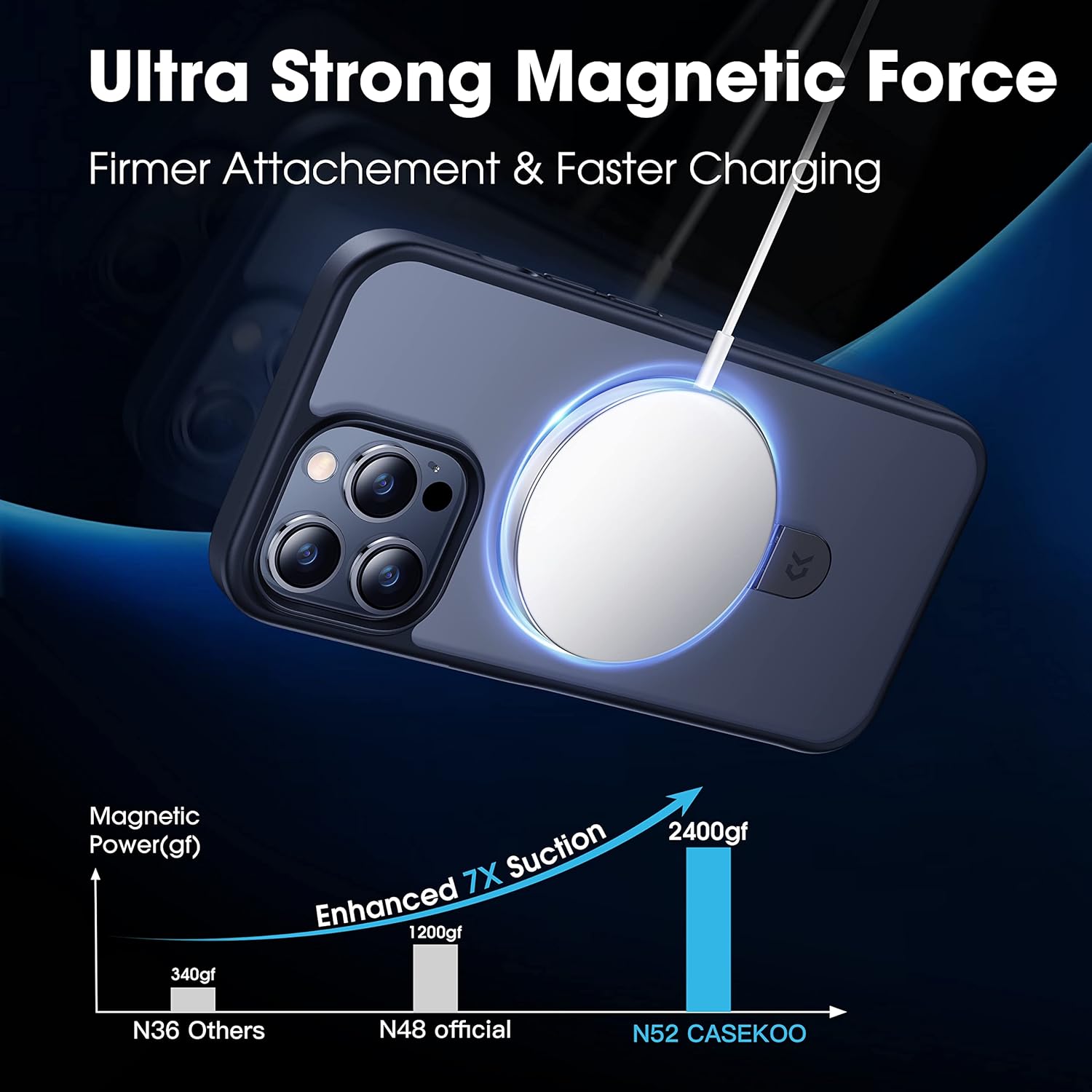 - [Ultra Magnetism- 25W Upgrade] The MagicStand Case is compatible with all MagSafe accessories and third-party Qi-certified wireless chargers. It provides a built-in 48 pcs magnets ring structure, explicitly arranged with CASEKOO's MagPrime array technology, allowing for 2 TIMES STRONGER magnetism than the Official's. MagPrime ensures almost 0% POWER LOSS during wireless charging, making charging FASTER YET SAFER