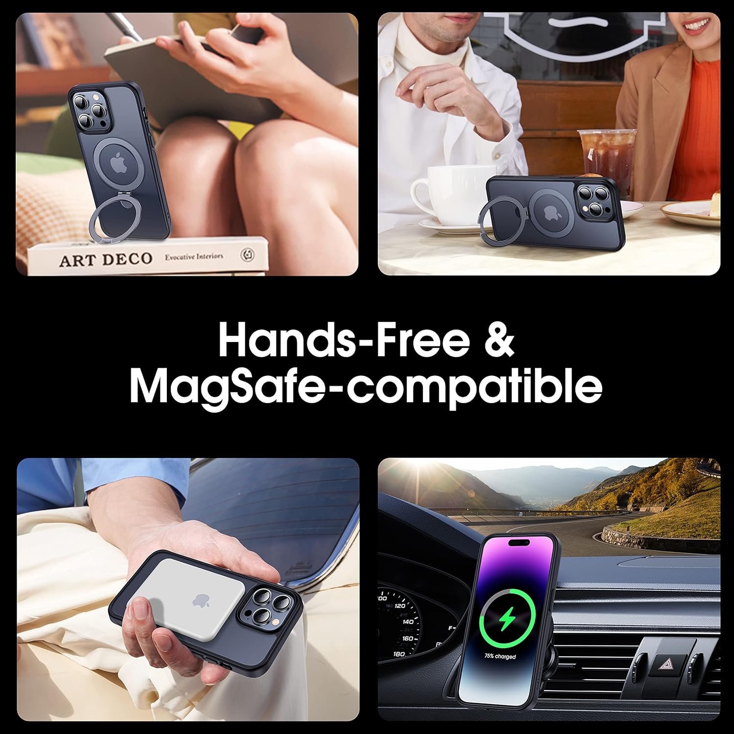 - [16FT Military Grade Protection] Based on 5000+ extreme drop resistance tests, the MagicStand case's durability and sturdiness surpass most ordinary phone cases. It passed the Military Grade test by the (MIL-STD-810H 516.8). The shockproof polycarbonate back and airpad cushioning enhance protection against daily drops and bumps. A 2.5mm raised camera border prevents lens scratches, while a 1.24mm bezel safeguards your screen