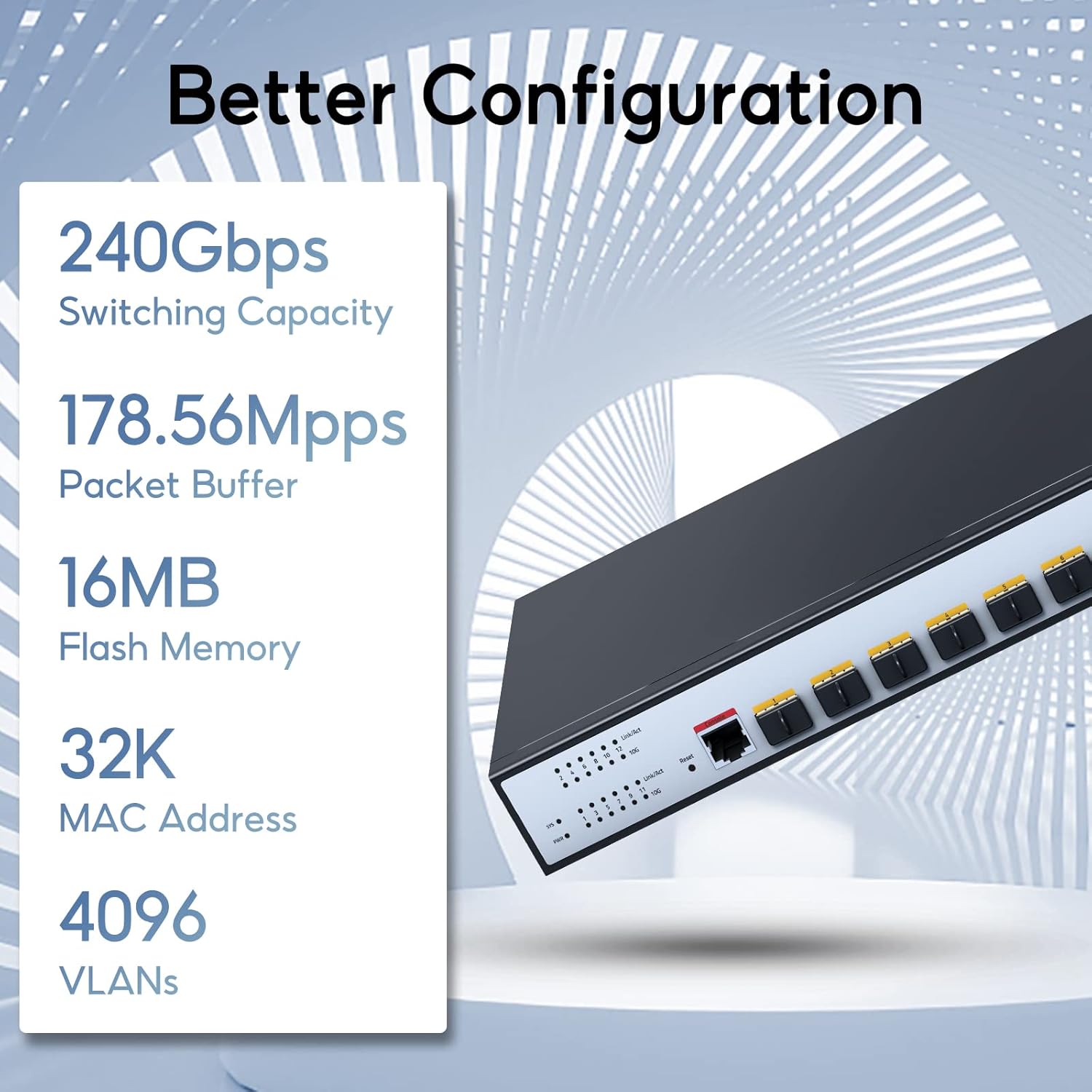 - 【Heat Dissipation with Fan】The managed switch uses a built-in fan, with the body of the multi-directional heat dissipation, to ensure the smooth and safe operation of the network switch and reduce the operating pressure caused by the heat of the body.Moreover,we committed to provide product- replace- without- repair service within 1 year, more concern on your using experience.