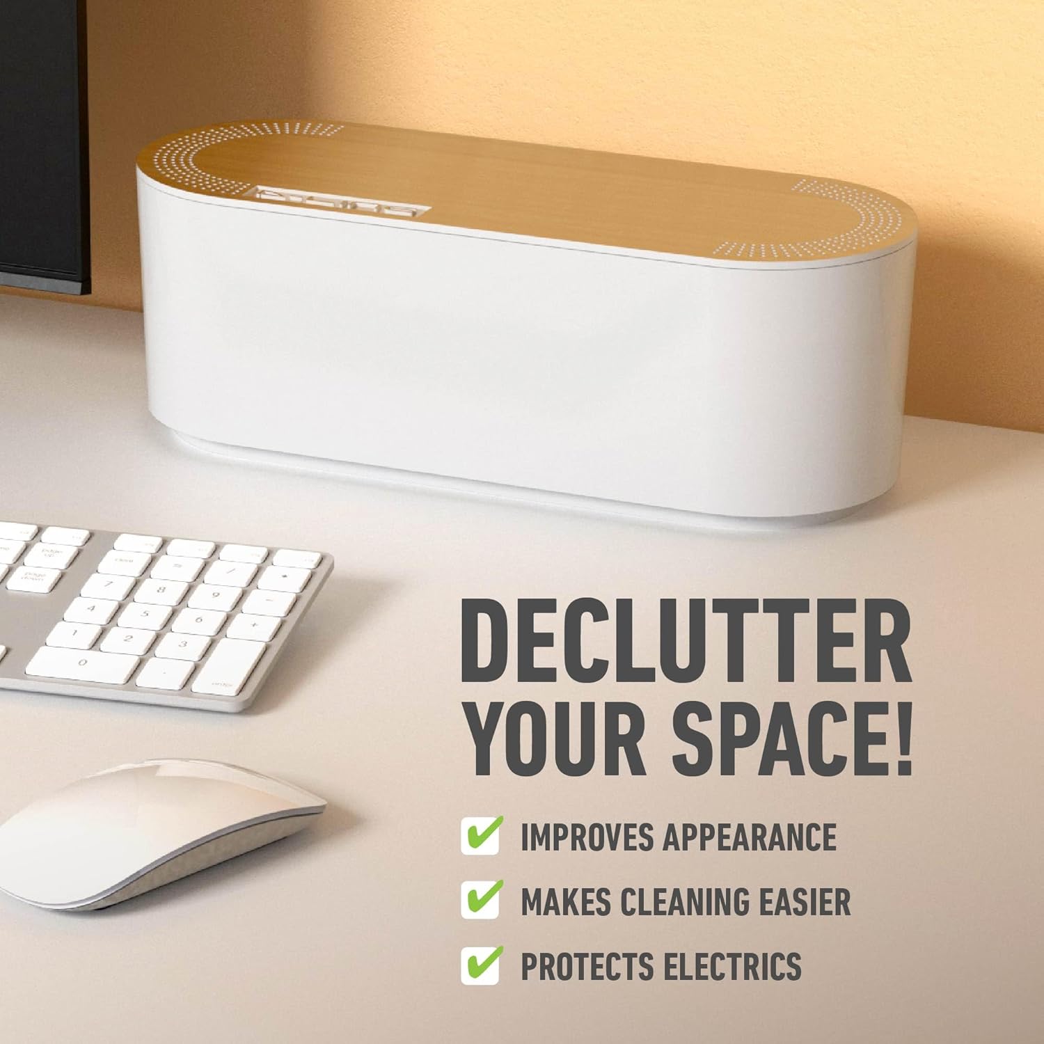 - IMPROVE APPEARANCE! D-Line Cable Management Box contains popular sized power strips and excess cord clutter. By utilizing D-Line Cable Boxes wasted space is regained, with unsightly cables out of sight, your space will look neat & organized.