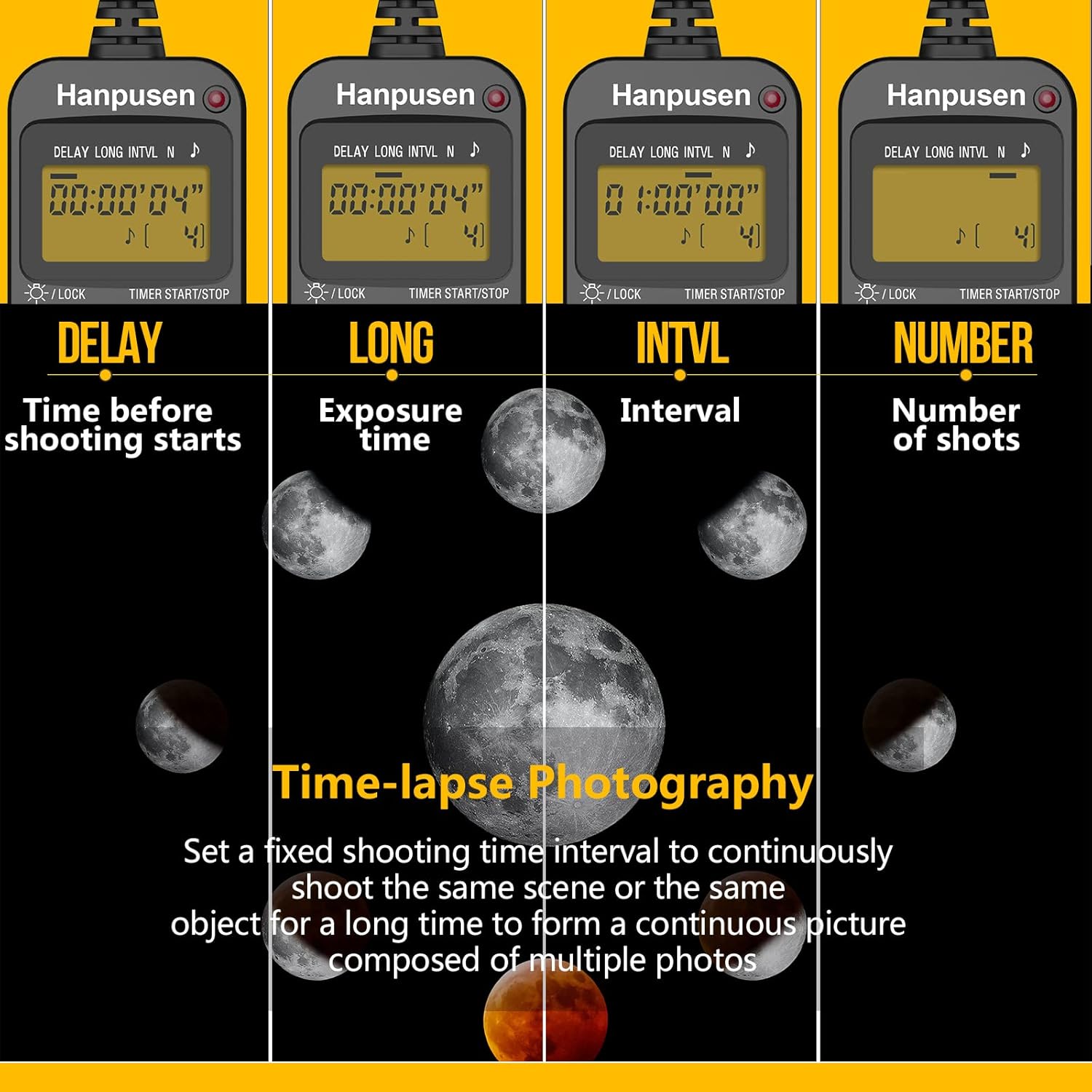 - This timer remote control supports single shooting, bulb shooting, delay shooting and timer shooting modes,And design for group, macro, long exposures, continuous, motion shooting, etc.
