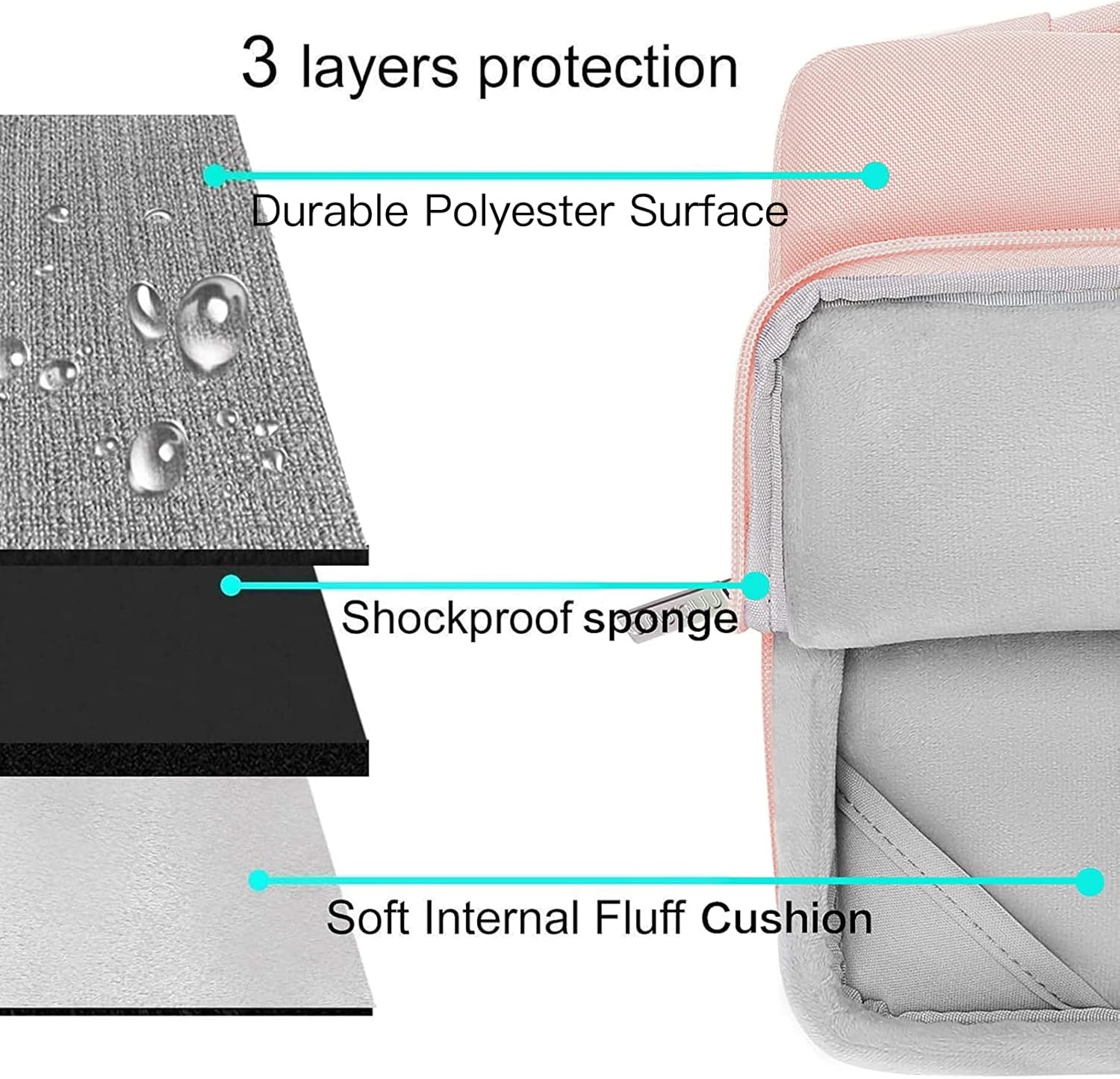 - The 360 degree protective shockproof laptop sleeve with handle carrying bag internal dimension: 13.39 x 9.25 x 0.79 inches (L x W x H); external dimension: 13.98 x 9.84 x 0.79 inches (L x W x H). The front side pocket dimension: 11.61 x 9.25 inches (L x W). Made of polyester material, protect your laptop against accidental spills. Slim and lightweight, does not bulk your device up and can easily slide into your briefcase, backpack or other bag. Ideal for business, daily and travel.