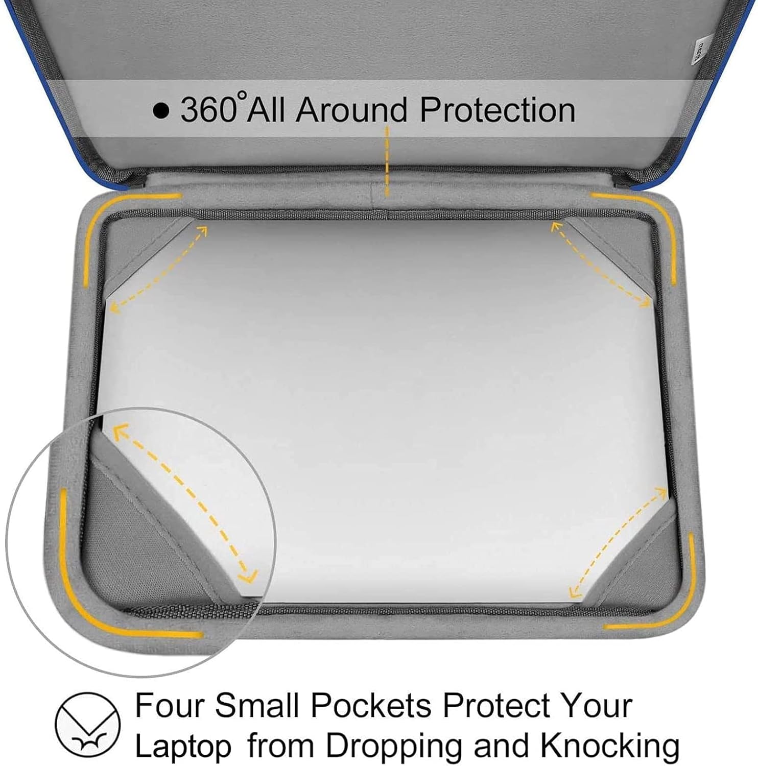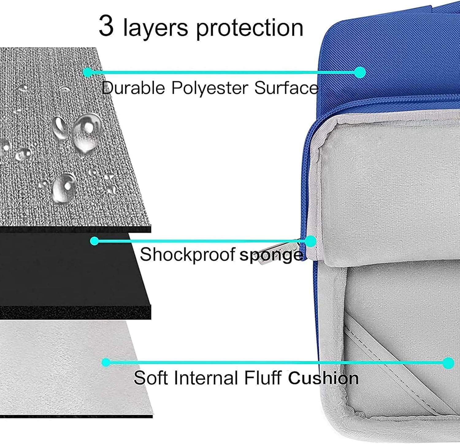 - The 360 degree protective shockproof laptop sleeve with handle carrying bag internal dimension: 13.39 x 9.25 x 0.79 inches (L x W x H); external dimension: 13.98 x 9.84 x 0.79 inches (L x W x H). The front side pocket dimension: 11.61 x 9.25 inches (L x W). Made of polyester material, protect your laptop against accidental spills. Slim and lightweight, does not bulk your device up and can easily slide into your briefcase, backpack or other bag. Ideal for business, daily and travel.