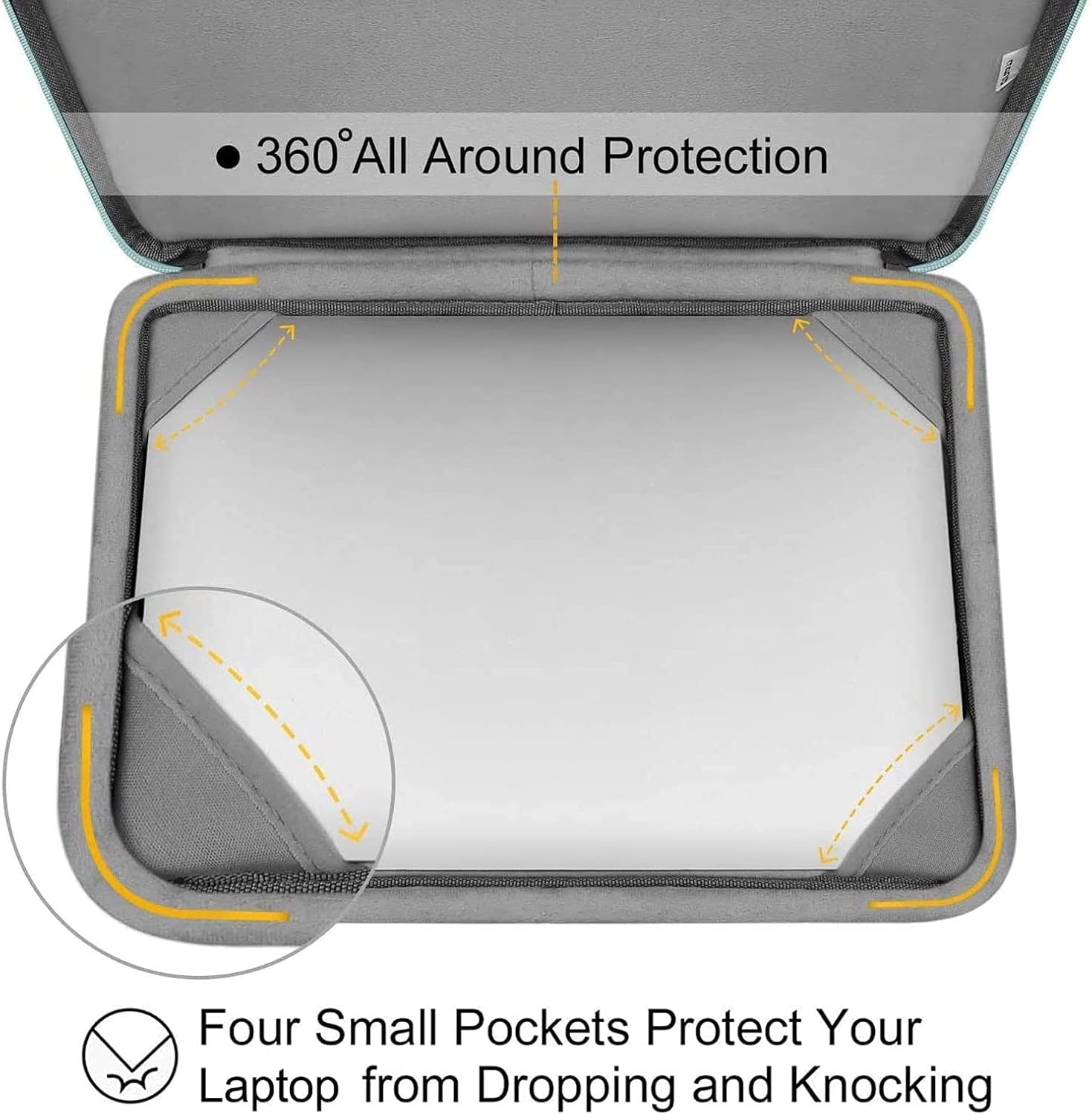 - The 360 degree protective shockproof laptop sleeve with handle carrying bag internal dimension: 13.39 x 9.25 x 0.79 inches (L x W x H); external dimension: 13.98 x 9.84 x 0.79 inches (L x W x H). The front side pocket dimension: 11.61 x 9.25 inches (L x W). Made of polyester material, protect your laptop against accidental spills. Slim and lightweight, does not bulk your device up and can easily slide into your briefcase, backpack or other bag. Ideal for business, daily and travel.