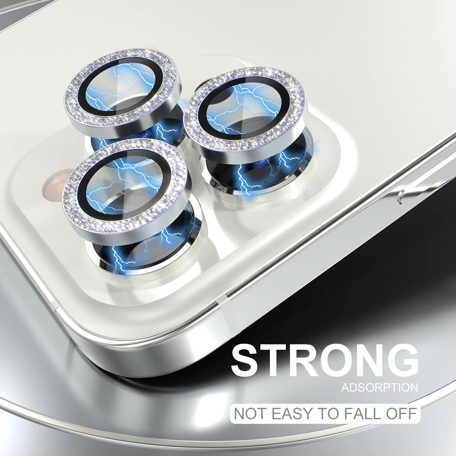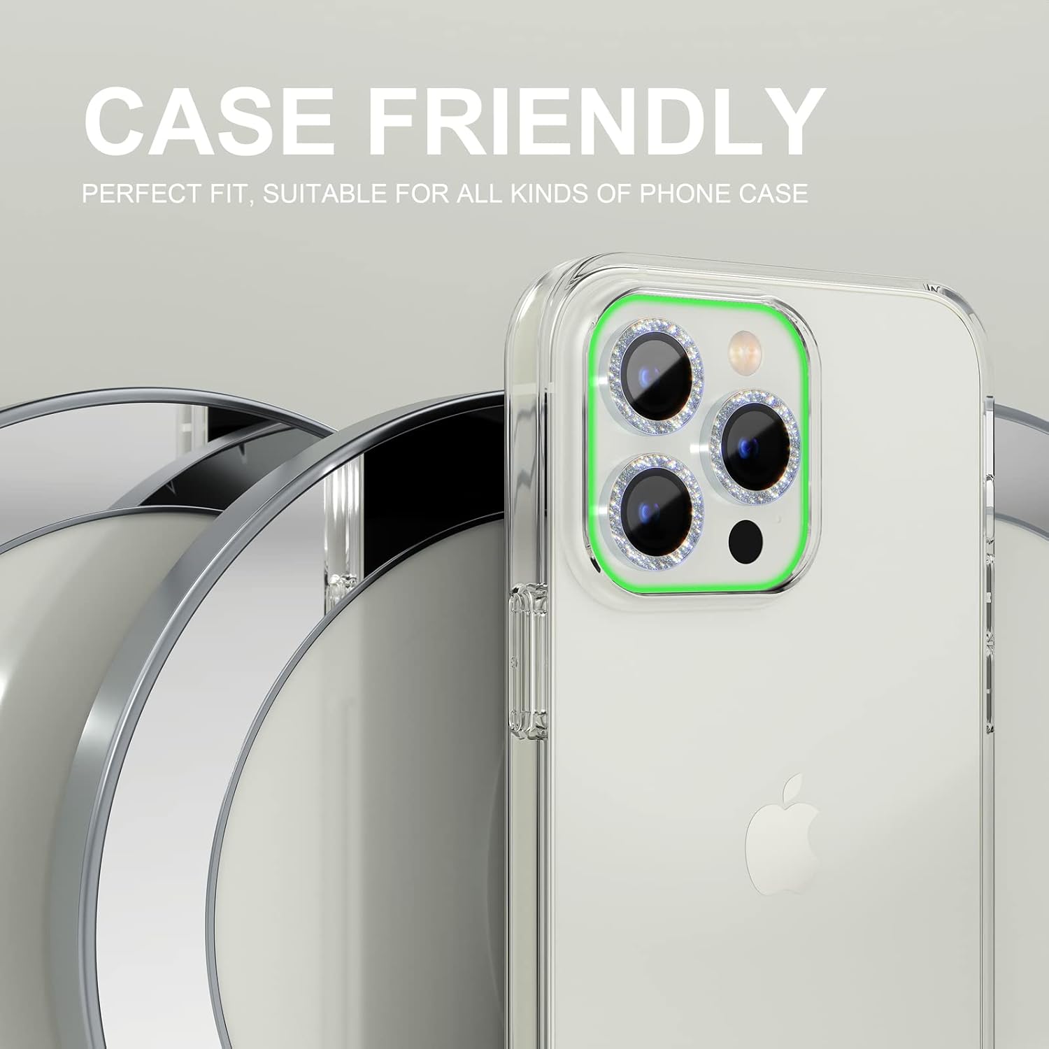 - Personalized Decoration: Made of high-quality aviation aluminum metal ring and 9H tempered glass and inlaid with bling rhinestones to give your iPhone 14 Pro/Pro Max camera lens a diamond gorgeous appearance, shining in the sun, very eye-catching and complimentary.