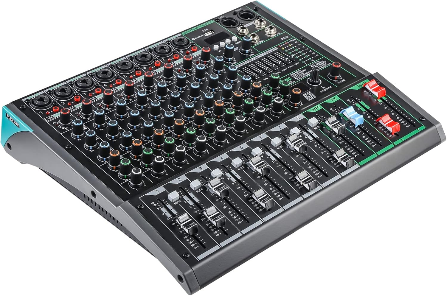8 Channel Dj Mixer, Dj Board for Pa Stage systems with 99 Kinds of DPS Digital Effects,Echo+Delay Effect,Mic/Line XLR+6.35mm Input, AUX, Usb,MP3 Player,Recording Headphone Jack,PA-8