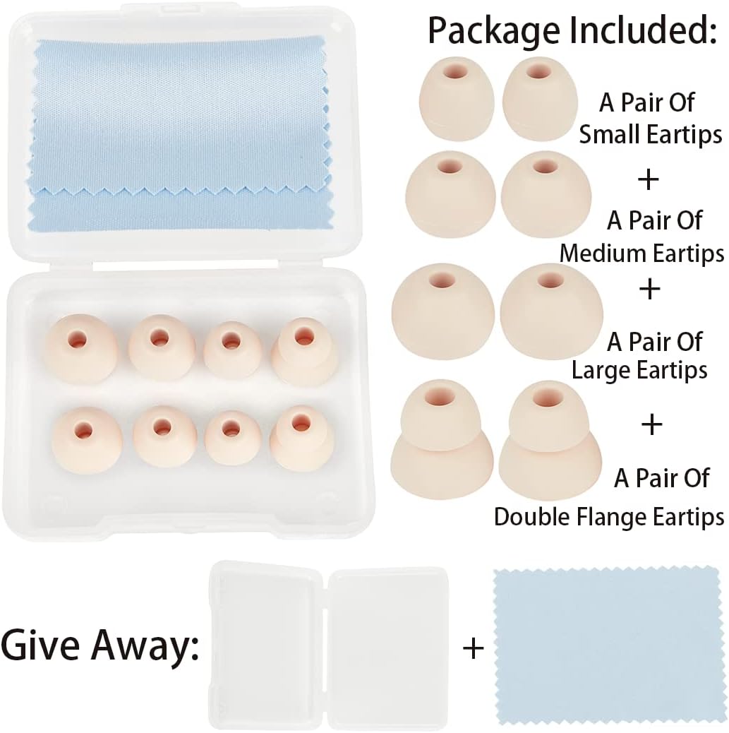 - Package Included: Gold Earbud Tips (1 Pair Of Large + 1 Pair Of Medium + 1 Pair Of Small Earbuds + 1 Pair Of Double Flange Earbus) 1 Pcs Fiber Cleaning Cloth And A Plastic Box For Eartips( Earbuds Only, Earphones Not Included).