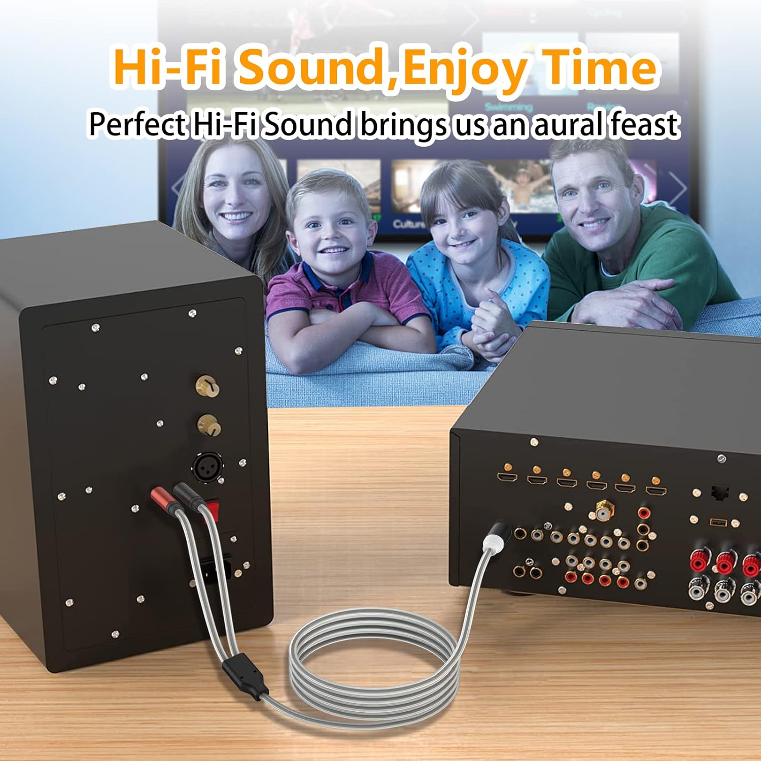 - [Use-Friendly]: RCA Male to Banana 2 Male Plug Y Splitter Speaker Wire Audio Cable is a plug-and-play product, just connect the RCA plug to your device, and then insert the banana plug into the audio output device, you can start enjoying the audio experience.