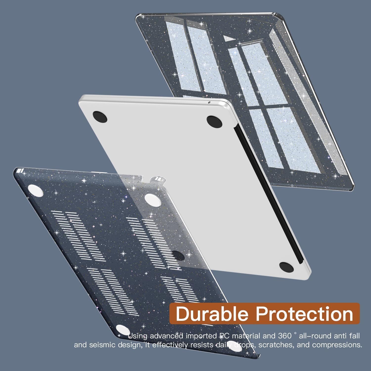 - ●[Simple Case, Logo See Through Design] Made of premium plastic material,Ultra slim but Sturdy and Durable,Light-weight (8.2 oz or 230 g) with soft touch glossy clear black glitter star color texture surface like a glove.No cut out design that makes your midnight/starlight/space gray/silver macbook air m3 m2 out of the ordinary while keep the original design.