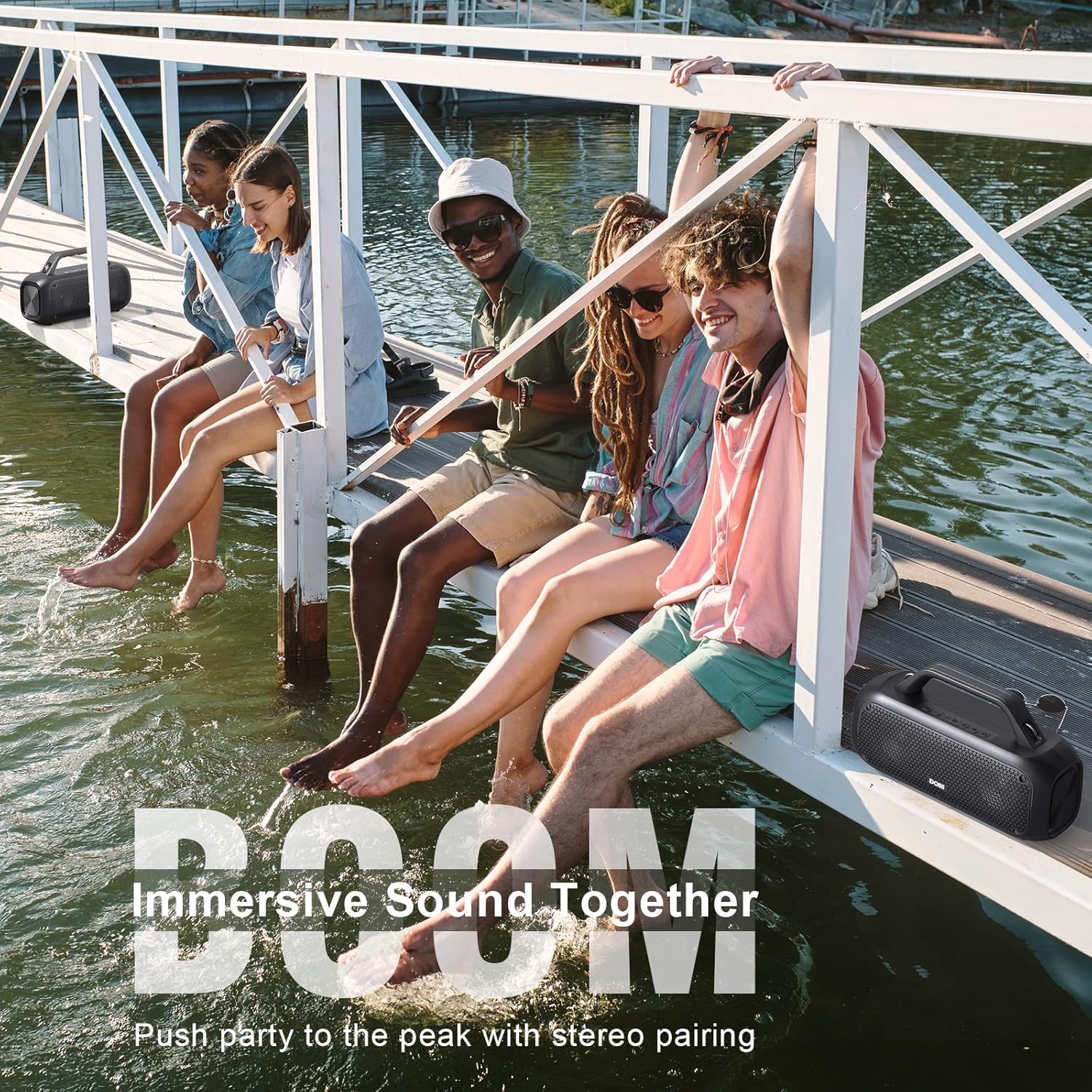 DOSS Extreme Boom Outdoor Bluetooth Speaker with 60W Mighty Sound, Deep Bass, 30H Playtime,10400mAh Power Bank, BT 5.3, IPX6 Waterproof, Portable Strap for Camping, Pool, Beach, Garage, Work