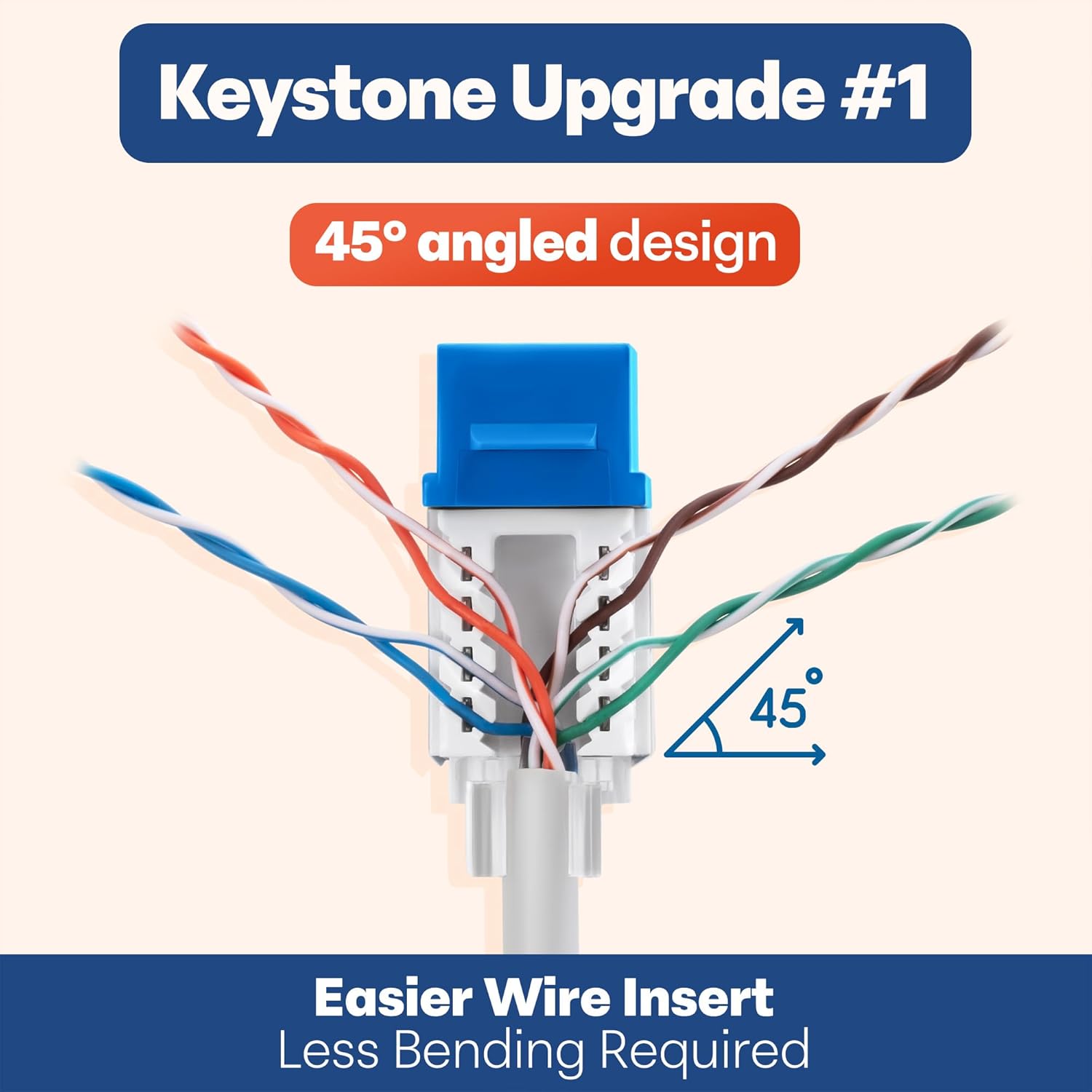 - Compatibility - compatible with our 45° Angled speed termination tool - 45Term (B0BL3GS7ZY). The jacks can also work in conjunction with a standard punch down tool and punch down stand for convenience.