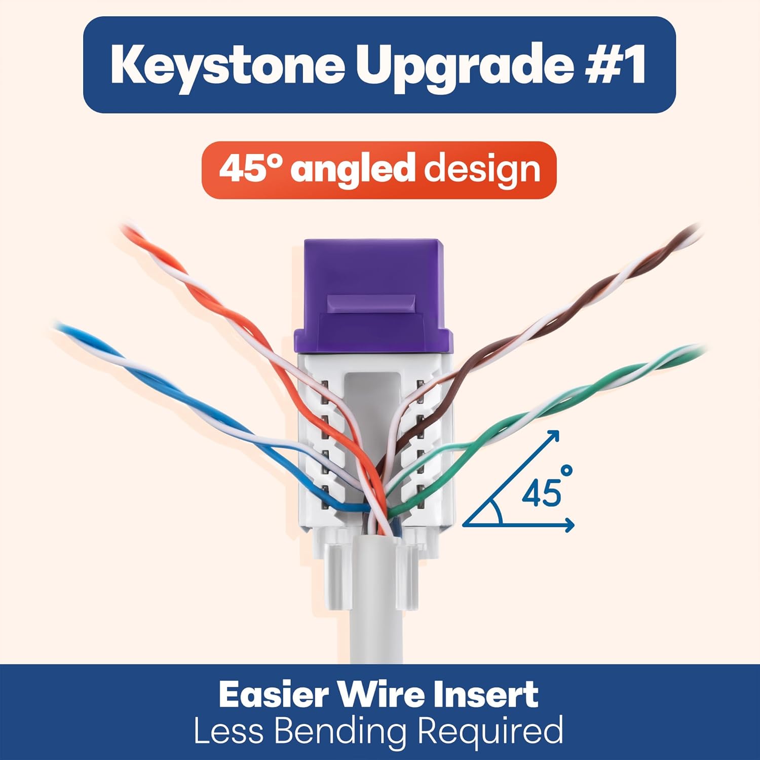 Everest 45° Angled RJ45 Cat6A Keystone Jacks 50-Pack in Purple - Slim Profile Female RJ45 Connectors - Cat 6A Keystone Jack - Compatible with 45° Angled Speed Termination Tool - 45Term (B0BL3GS7ZY)