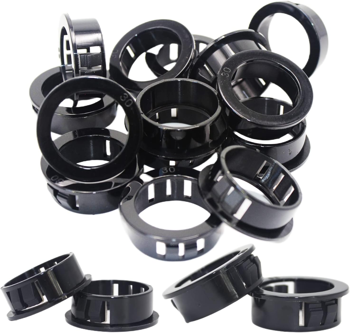 1-3/16"(30mm) Black Snap-in Knockout Insulating Bushing Grommets, Plastic Cable Hole Grommets for Wiring, Round Nylon Snap in Locking Electrical Wire Cord Hose Tubing Bushings Grommets, 15pcs