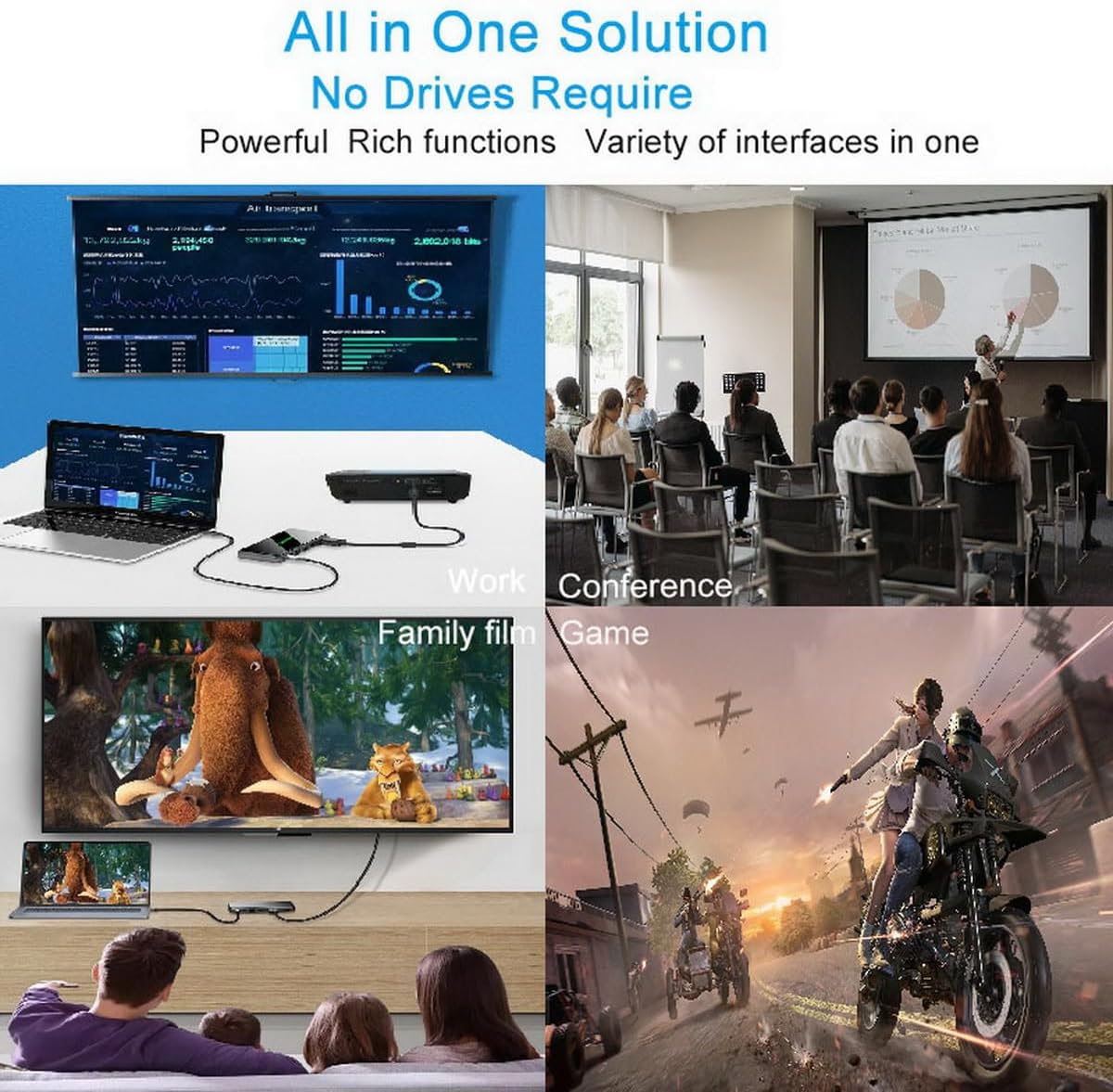 - 【12 IN 1 USB-C Laptop Docking Station】 This multiport USB C adapter to dual HDMI, HDMI 1 and HDMI 2 single port up to 4Kx2K @30Hz/3840x2160, dual display up to 1920x1080@60Hz, or triple displays up to 1600x900@60Hz; VGA port up to1080P@60Hz, 3 x USB 3.0(Up to 5Gbps), USB C 3.0, 100W PD3.0, Fast Ethernet up to 100Mbps, SD/TF, 3.5mm Audio Jack【 Note】ONLY when your devices support 4K resolution, the video output will be 4K. Please make sure to use a HDMI 2.0 cable or better.