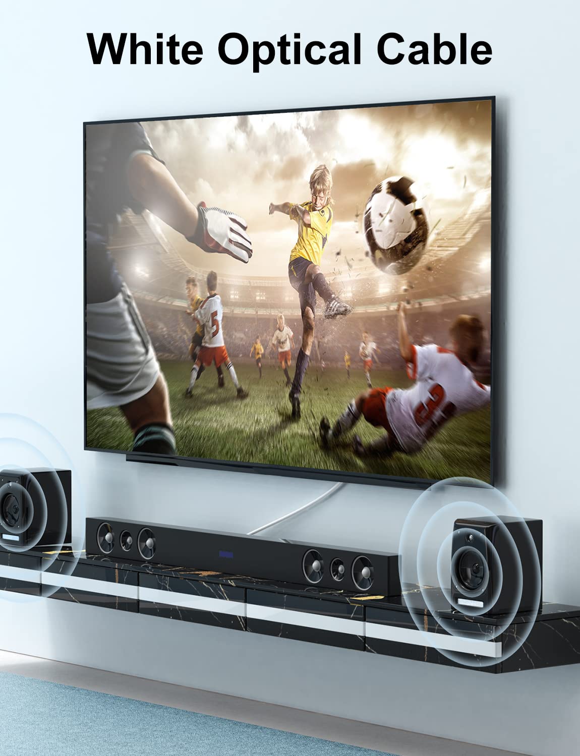 - EMK's high-quality digital optical audio cable (OD6.0mm) delivers superior flexibility and kink-resistant durability in a sleek white design, ensuring reliable signal transmission while maintaining a clean, tangle-free setup for your home theater, soundbar, or audio system.