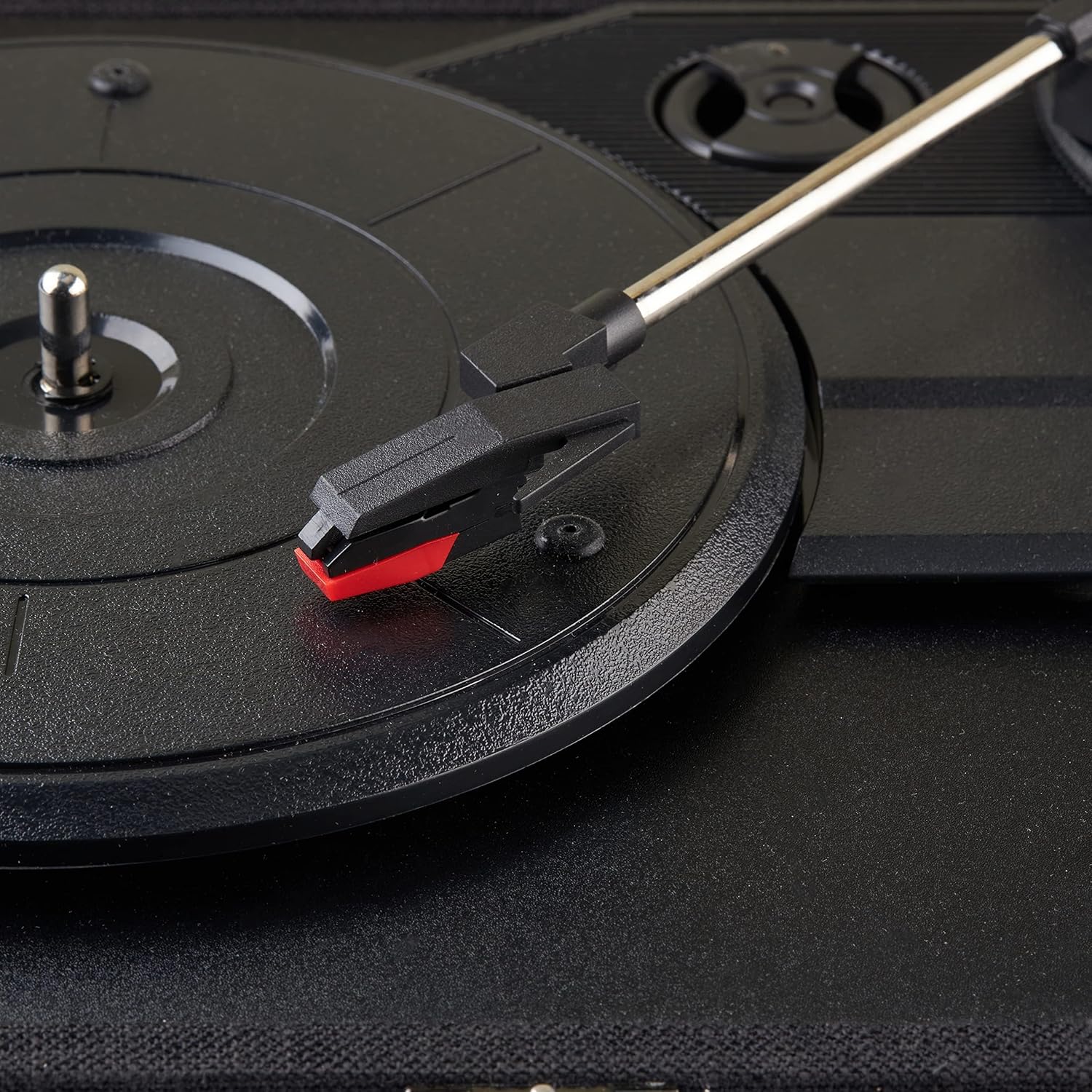 Amazon Basics Portable Suitcase Vinyl Turntable Record Player with Built-in Speakers and Bluetooth, Supports 3-Speed, Black