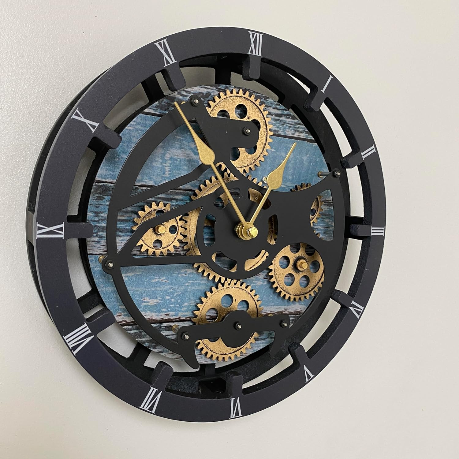 ImprovingLife The Gears Clock Desk Clock 10 inches with Real Moving Gears Convertible into Wall Clock (Aqua Green)