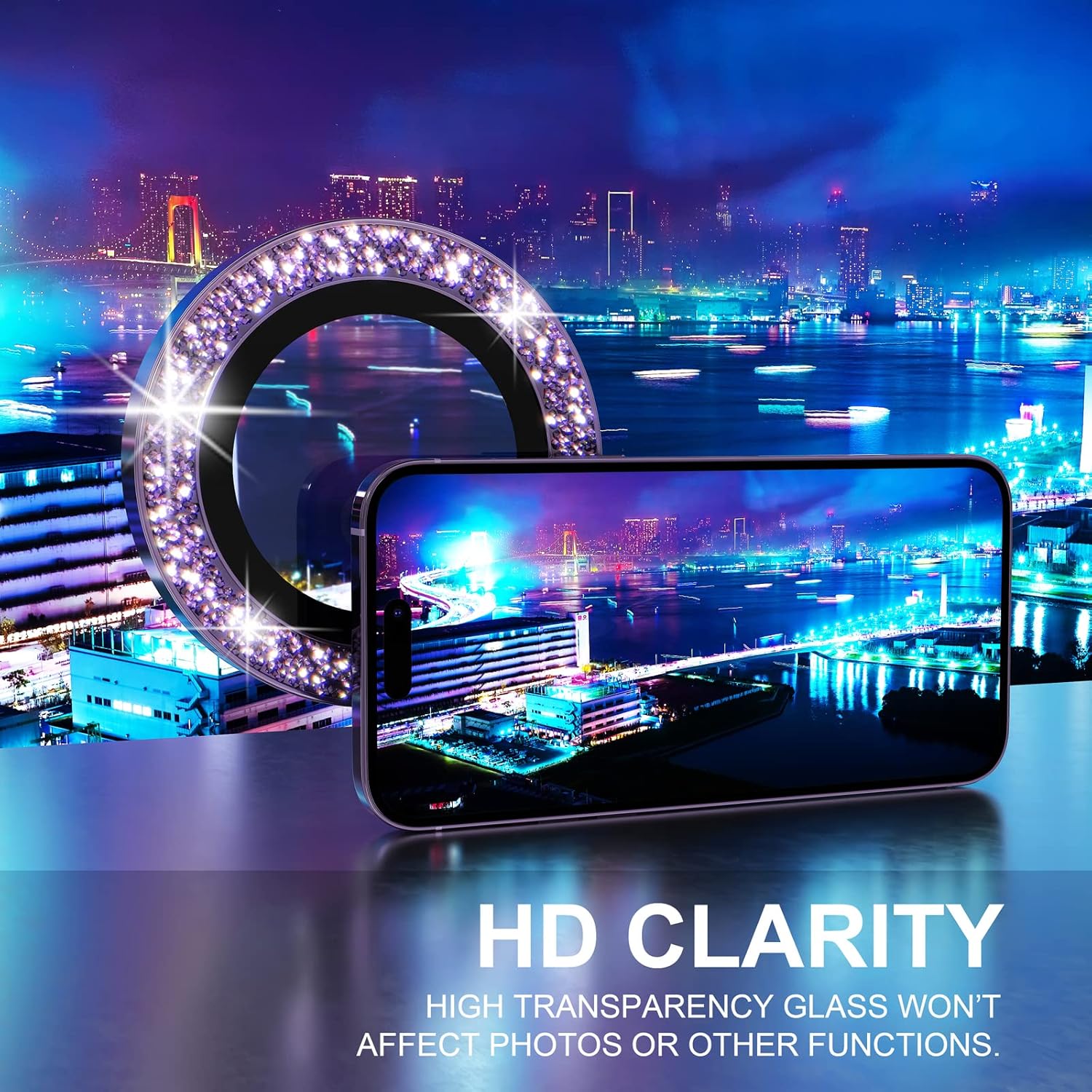 - Personalized Decoration: Made of high-quality aviation aluminum metal ring and 9H tempered glass and inlaid with bling rhinestones to give your iPhone 14 Pro/Pro Max camera lens a diamond gorgeous appearance, shining in the sun, very eye-catching and complimentary.