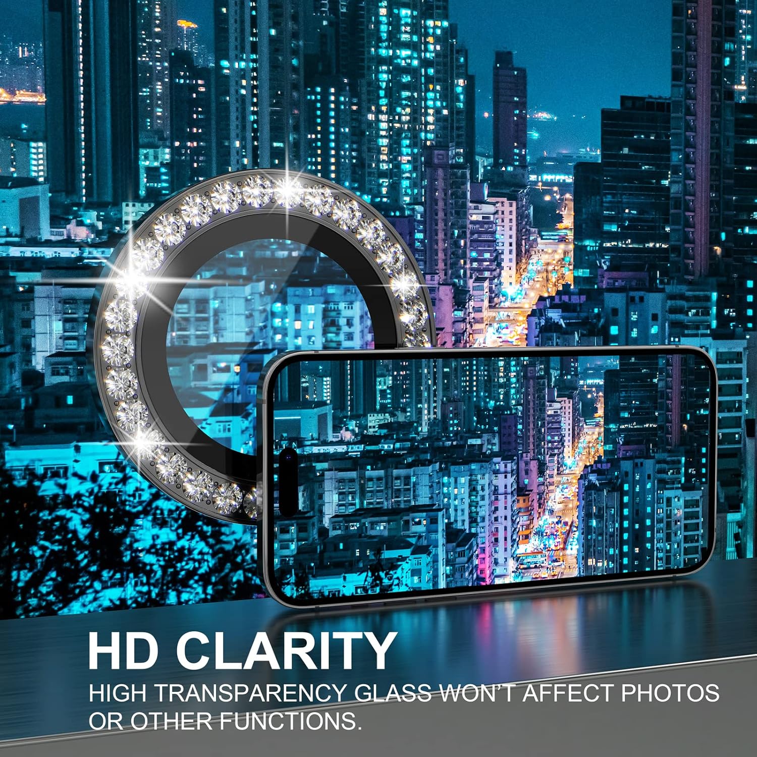 - Personalized Decoration: Made of high-quality aviation aluminum metal ring and 9H tempered glass and inlaid with bling rhinestones to give your iPhone 14 Pro/Pro Max camera lens a diamond gorgeous appearance, shining in the sun, very eye-catching and complimentary.