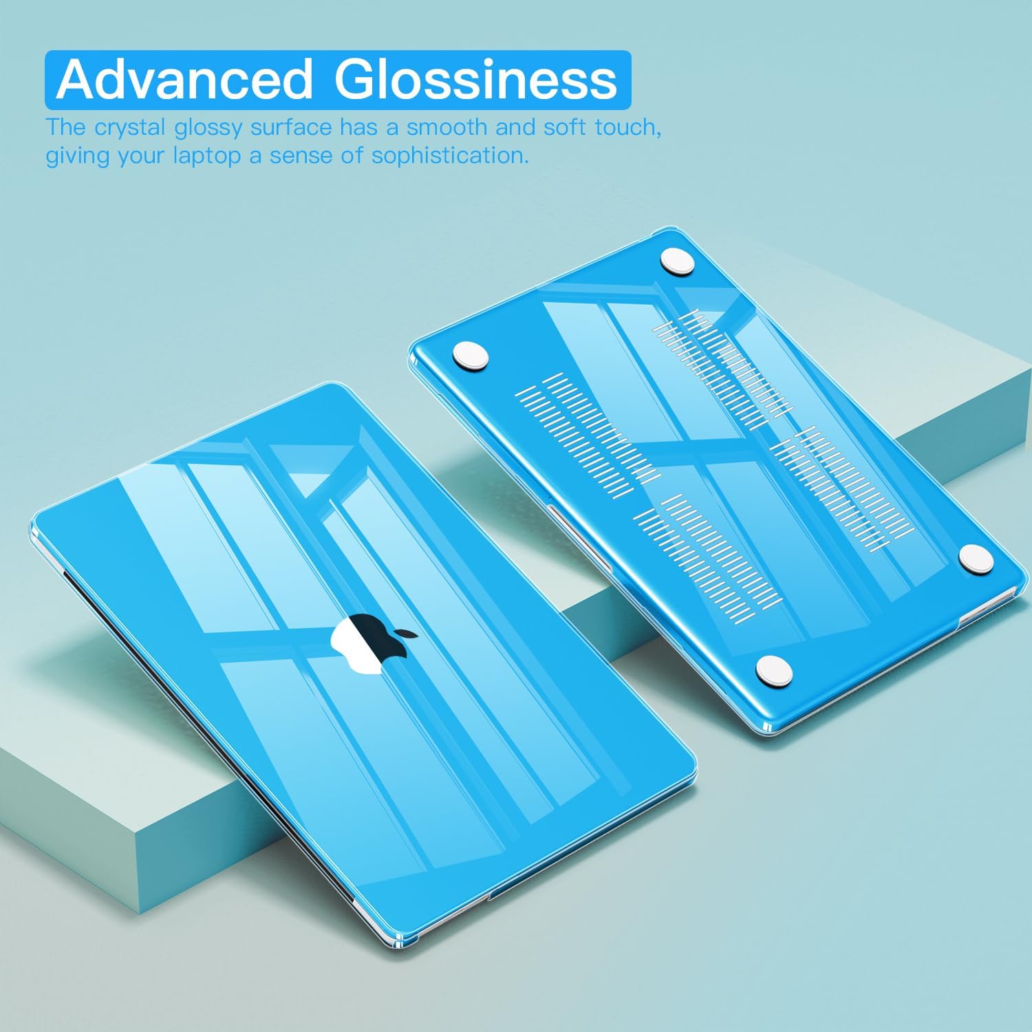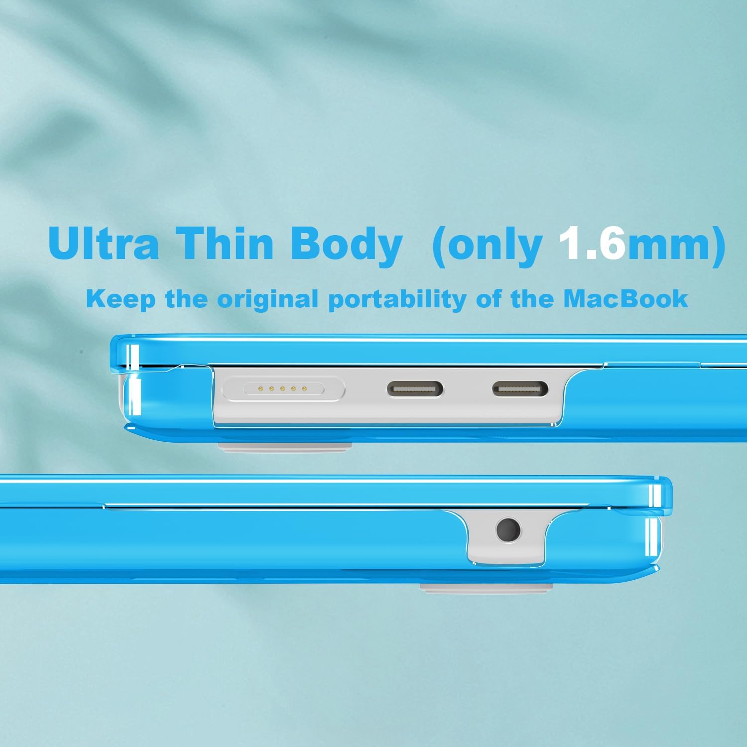 - ●[Simple Case, Logo See Through Design] Made of premium plastic material,Ultra slim but Sturdy and Light-weight (8.2 oz or 230 g) with soft touch crystal logo shine through Crystal Sky Blue color texture surface like a glove.No cut out design that makes your midnight/starlight/space gray/silver macbook air m2 m3 out of the ordinary while keep the original design.