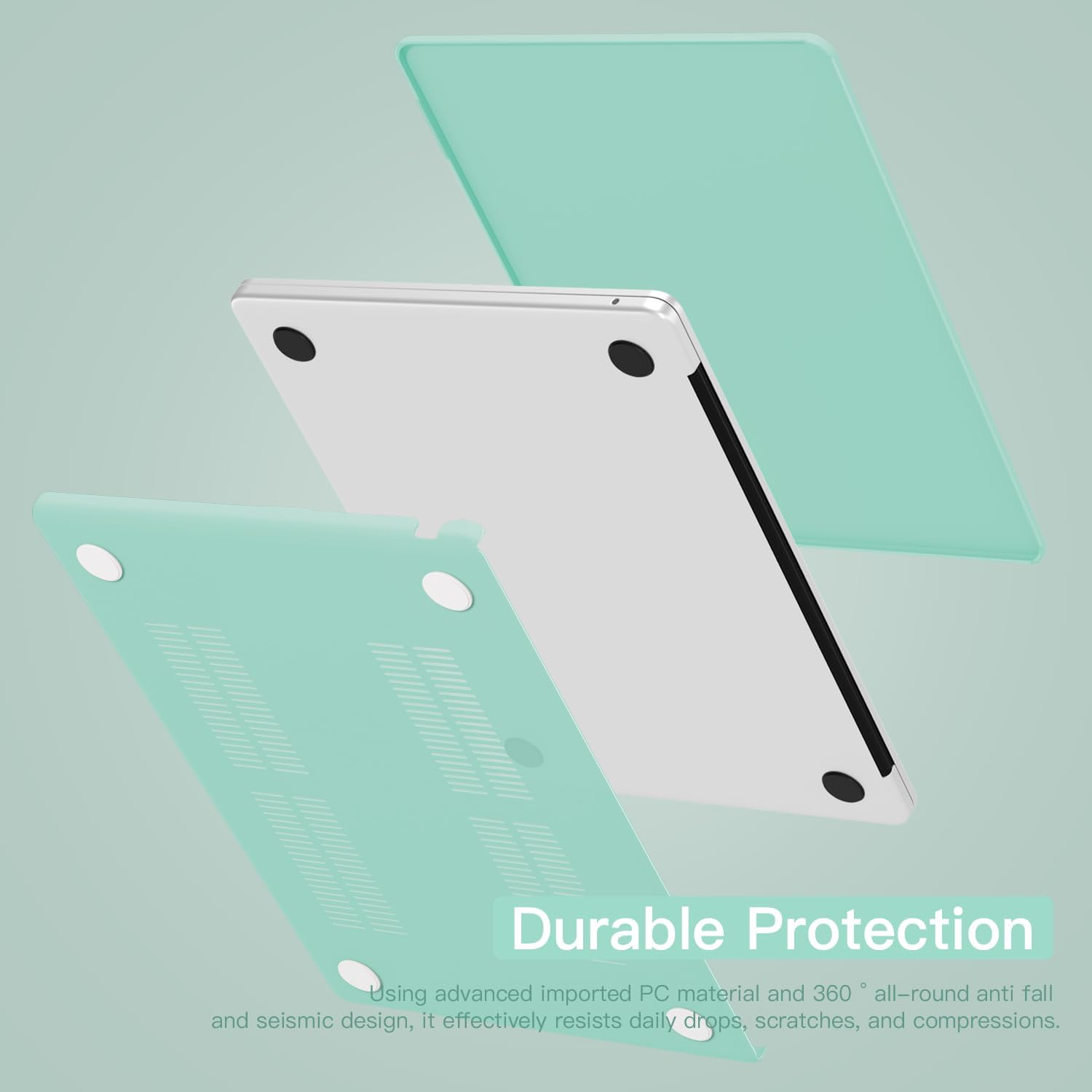 - ●[Two Separated Pieces Case,Snap on/Clip On Design] Top Cover and Bottom Cover Two pieces(separated cover) and Snap on design,easy to clip on and take off,let you open/close your MacBook freely all the time.Thunderbolt port access ,also access to all ports without removing the case.Bottom cover with vent slots to heat dissipation and 4 raised rubberized feet to keep your laptop firmly on the place.