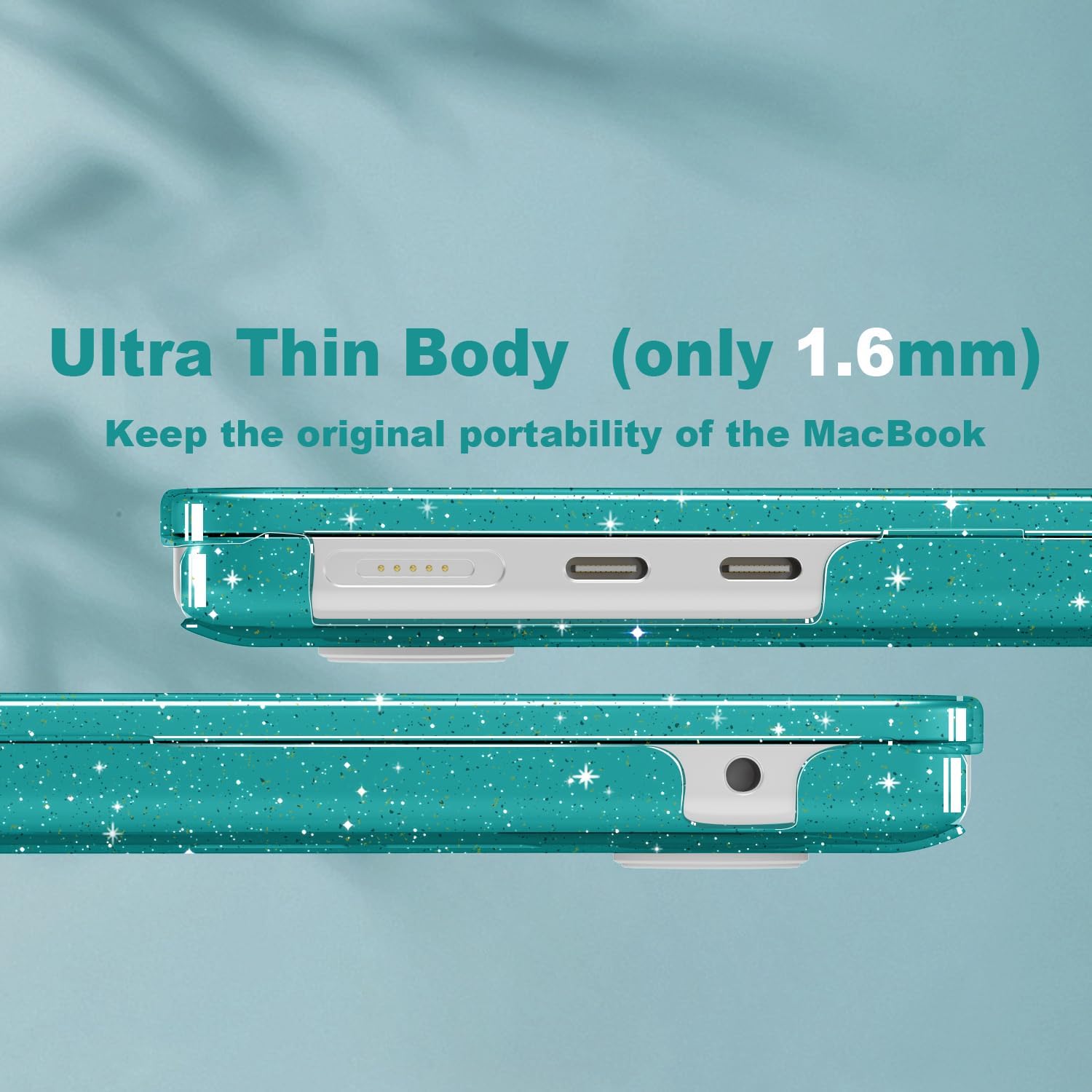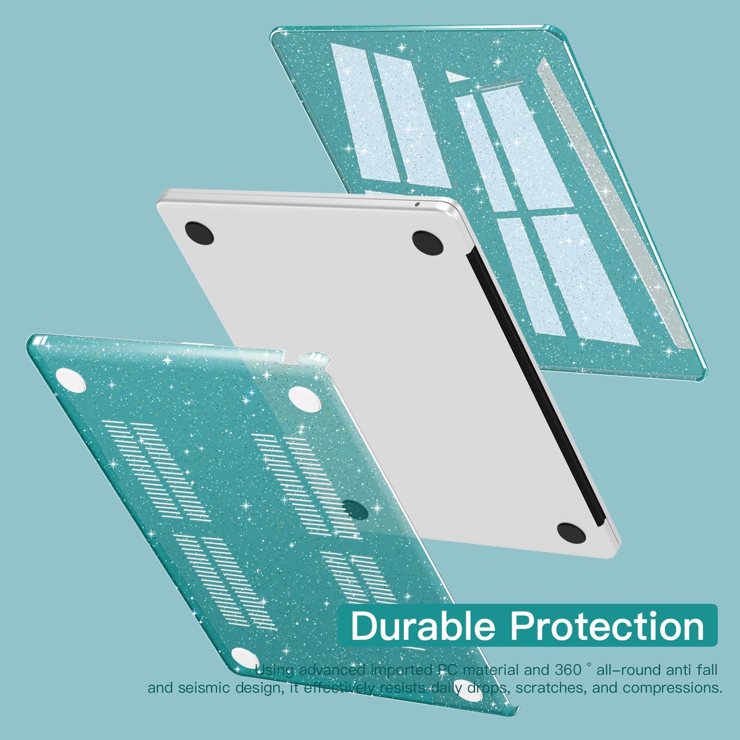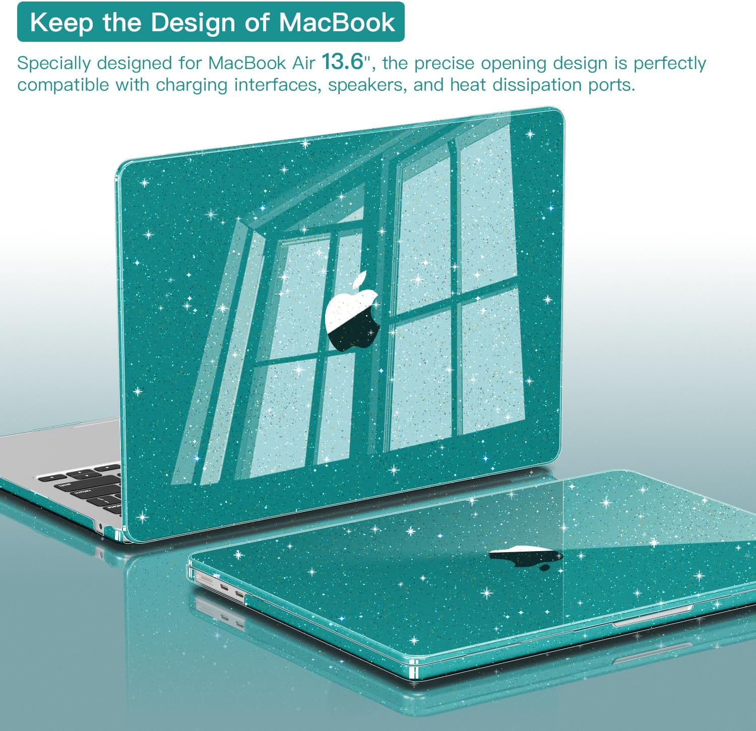 - ●[Simple Case, Logo See Through Design] Made of premium plastic material,Ultra slim but Sturdy and Durable,Light-weight (8.2 oz or 230 g) with soft touch Deep Teal glitter star color texture surface like a glove.No cut out design that makes your midnight/starlight/space gray/silver macbook air m2 m3 out of the ordinary while keep the original design.