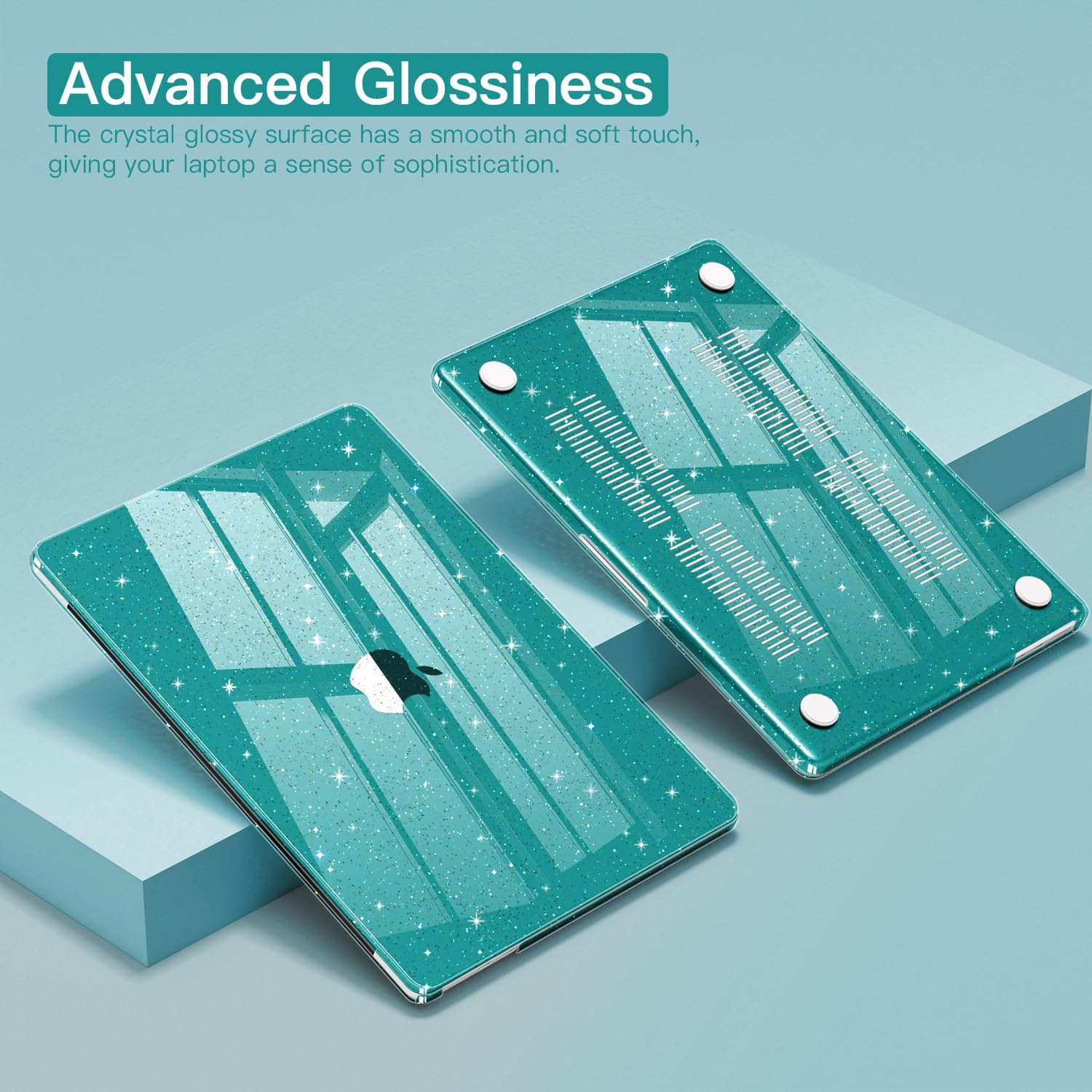 CISSOOK for MacBook Air 13 inch Case M4 M3 M2 2025 2024 2022, Plastic Hard Shell Case Glitter Bling Cover with Keyboard Cover for MacBook Air 13.6 A3240 A3113 A2681, Deep Teal Glitter