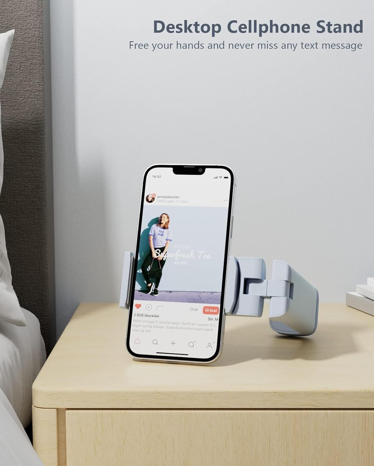 - A Practical and Versatile Gadget: This handy phone stand offers endless possibilities. It can securely hold your phone in various orientations – vertical or horizontal. You can attach it to a luggage handle, tray table, desktop, chair, shelf, bed, book, power bank, or even use it as a short selfie stick.
