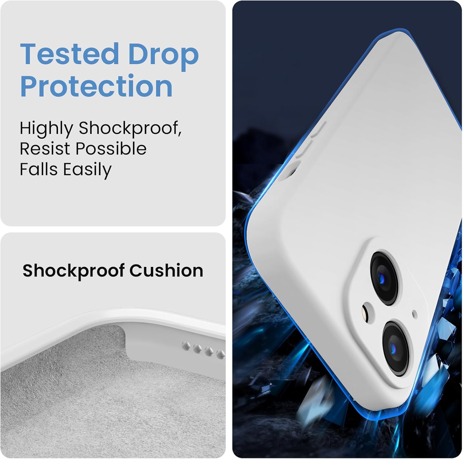 FireNova Designed for iPhone 14 Case, Silicone Upgraded [Camera Protection] Phone Case with [2 Screen Protectors], Soft Anti-Scratch Microfiber Lining Inside, 6.1 inch, White