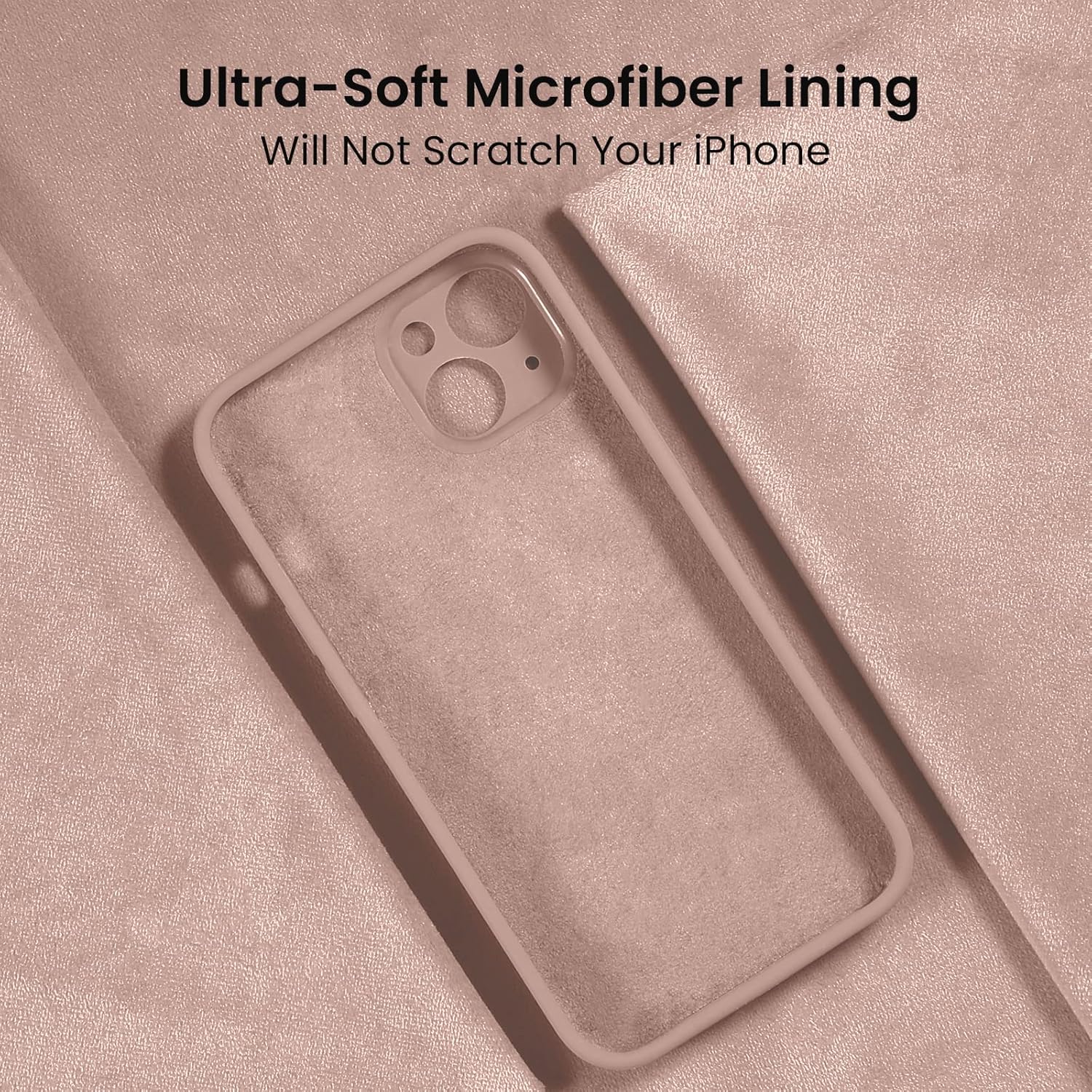 FireNova Designed for iPhone 14 Case, Silicone Upgraded [Camera Protection] Phone Case with [2 Screen Protectors], Soft Anti-Scratch Microfiber Lining Inside, 6.1 inch, Pinksand