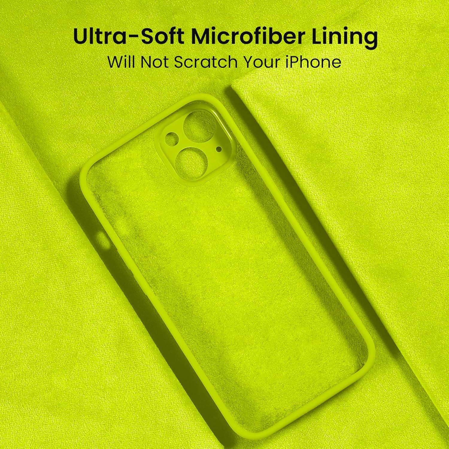 FireNova Designed for iPhone 14 Case, Silicone Upgraded [Camera Protection] Phone Case with [2 Screen Protectors], Soft Anti-Scratch Microfiber Lining Inside, 6.1 inch, Fluorescent Green