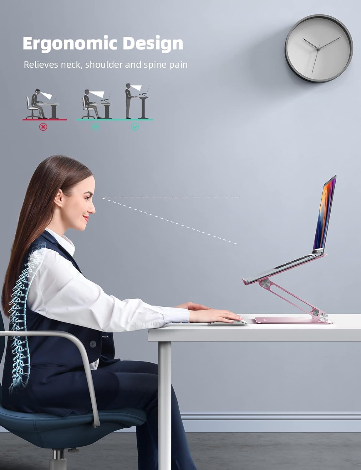 Lamicall Adjustable Laptop Stand, Portable Laptop Riser, Aluminum Laptop Stand for Desk Foldable, Ergonomic Computer Notebook Stand Holder for MacBook Air Pro, Dell XPS, HP (10-17.3'') -Pink